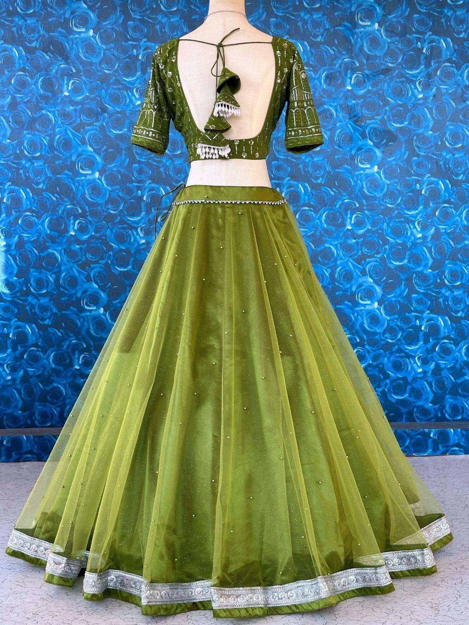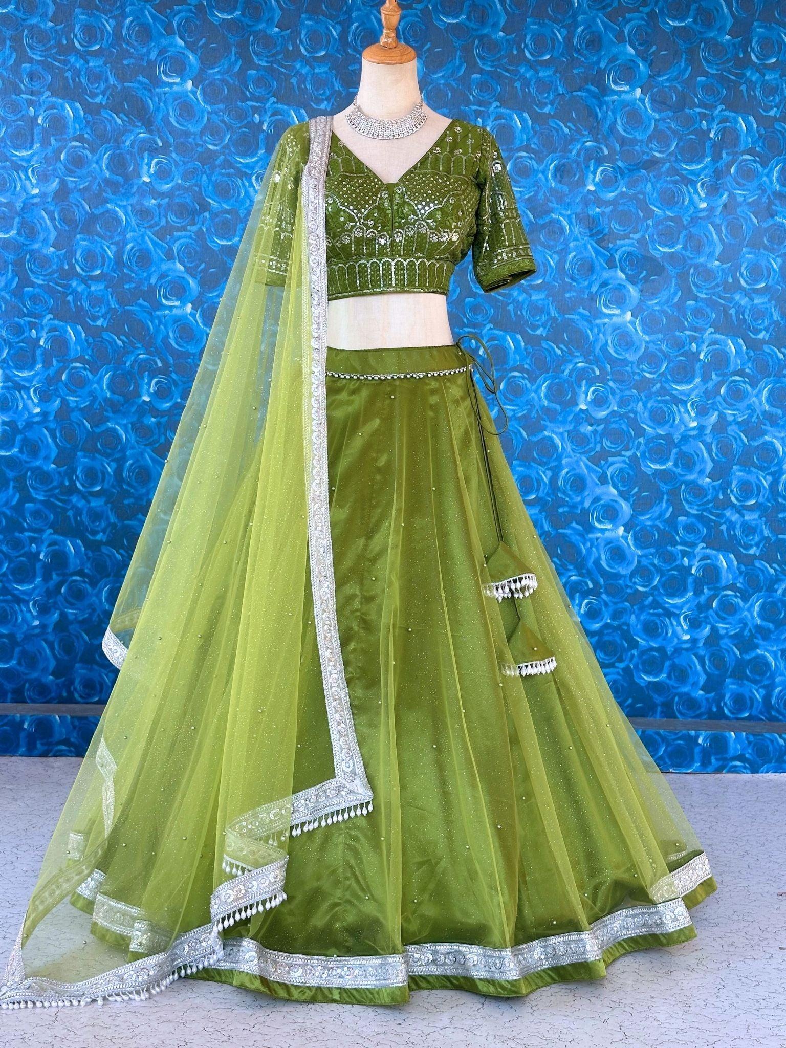 Green Lehenga Set With Silver