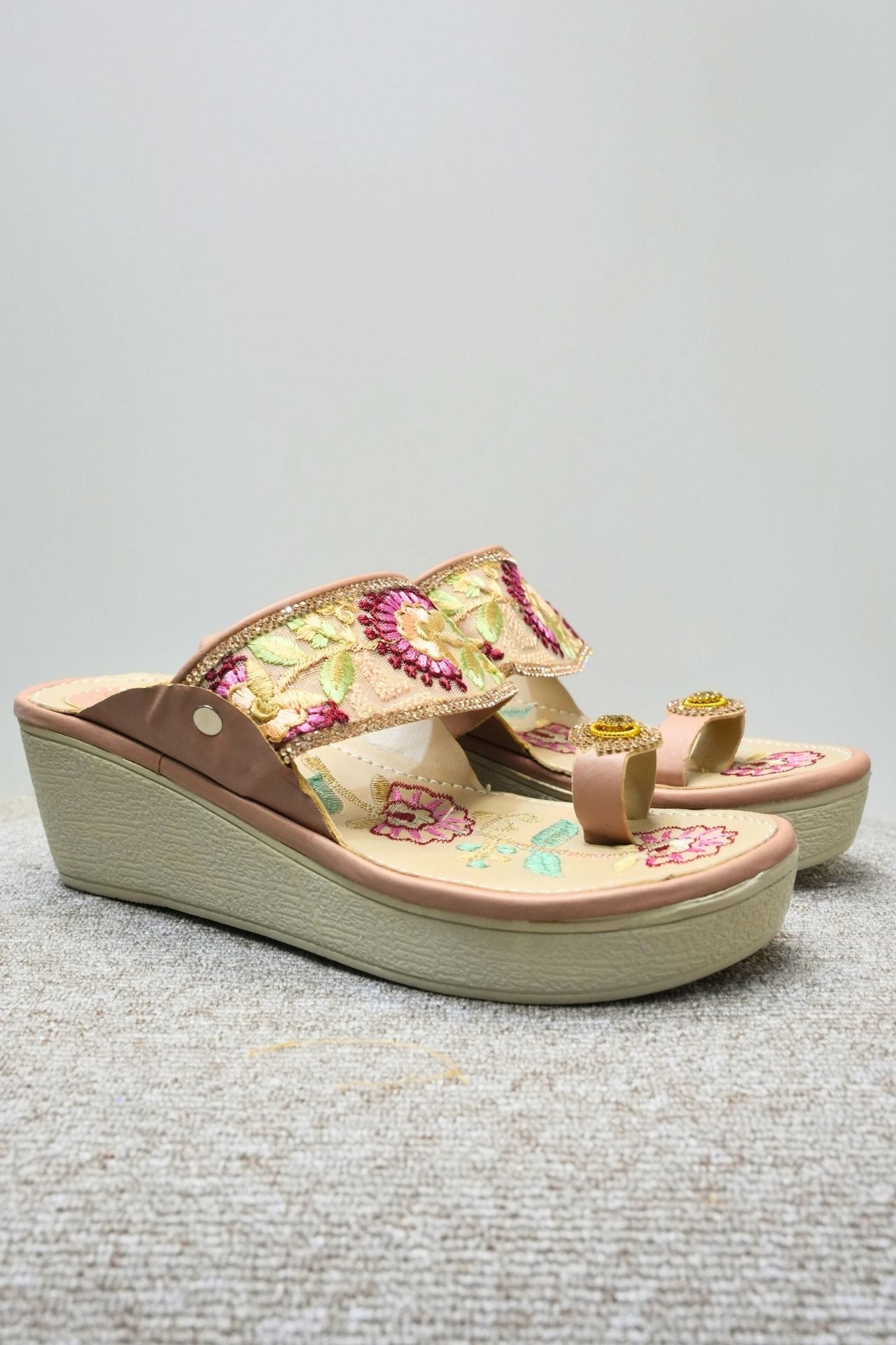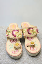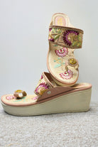 Pink Floral Embroidered Wedge Sandal