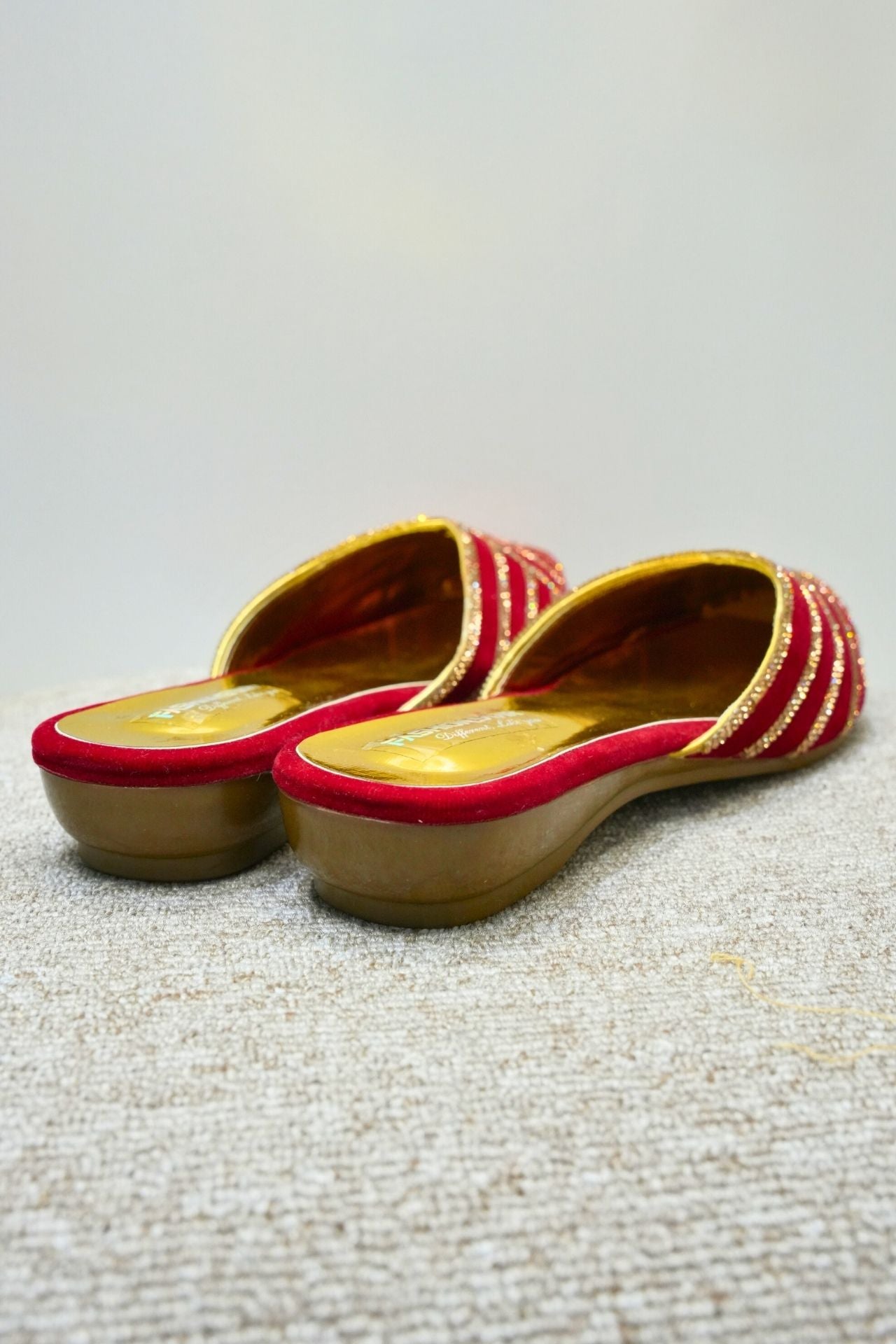 • Indulge in the stunning beauty of these Red Velvet shoes, the perfect choice to elevate your festive or party ensemble.