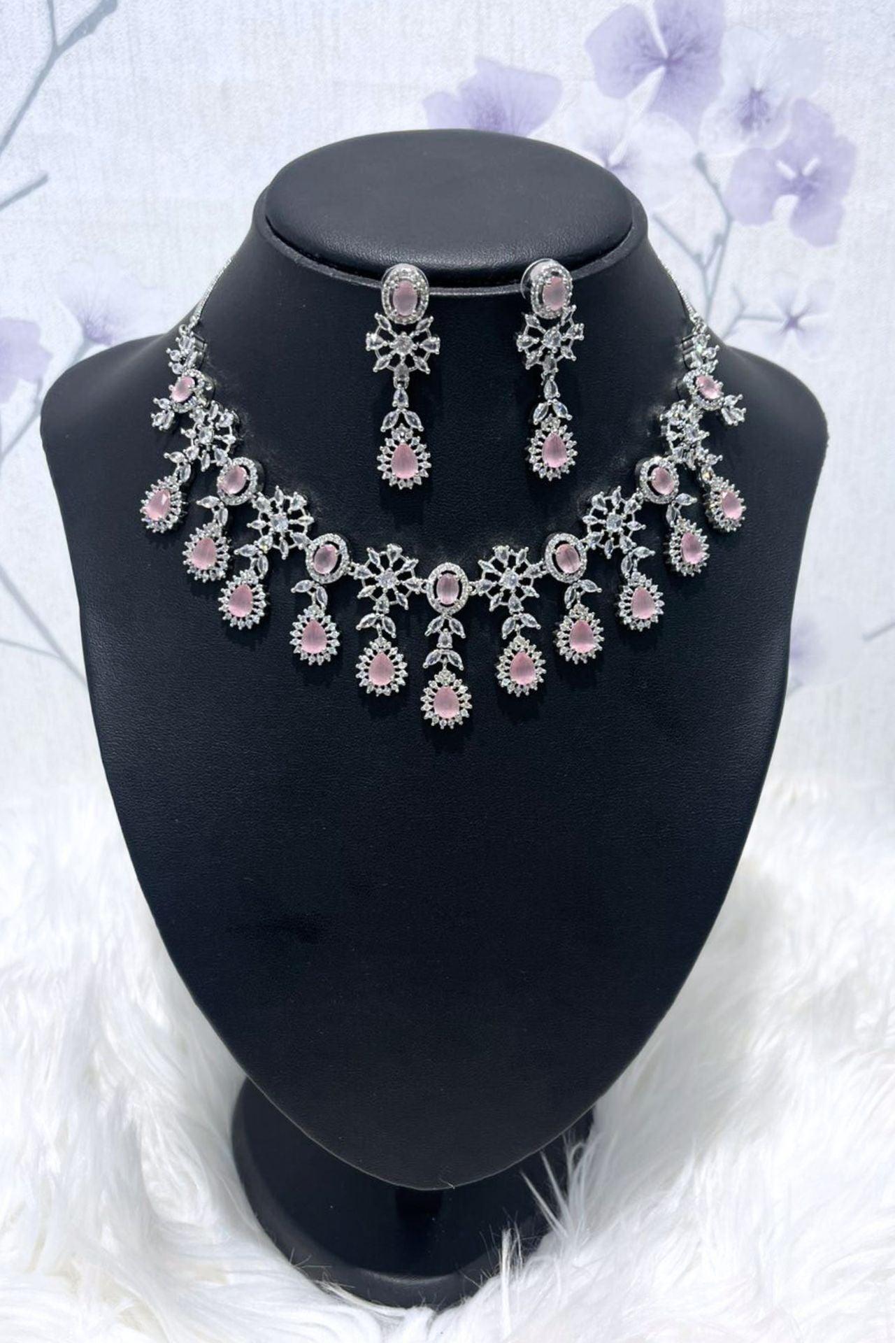 - Beautiful handmade CZ American diamond white stones necklace with earrings Set