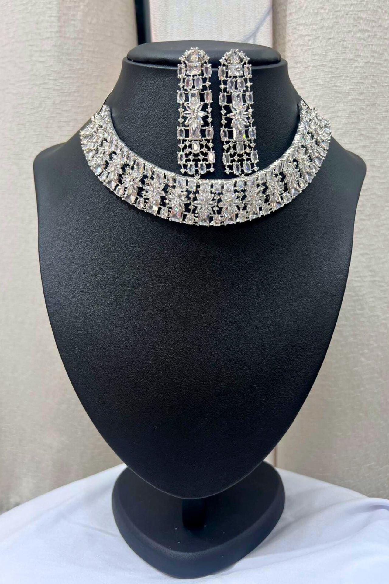 - Beautiful handmade CZ American diamond white stones necklace with earrings Set