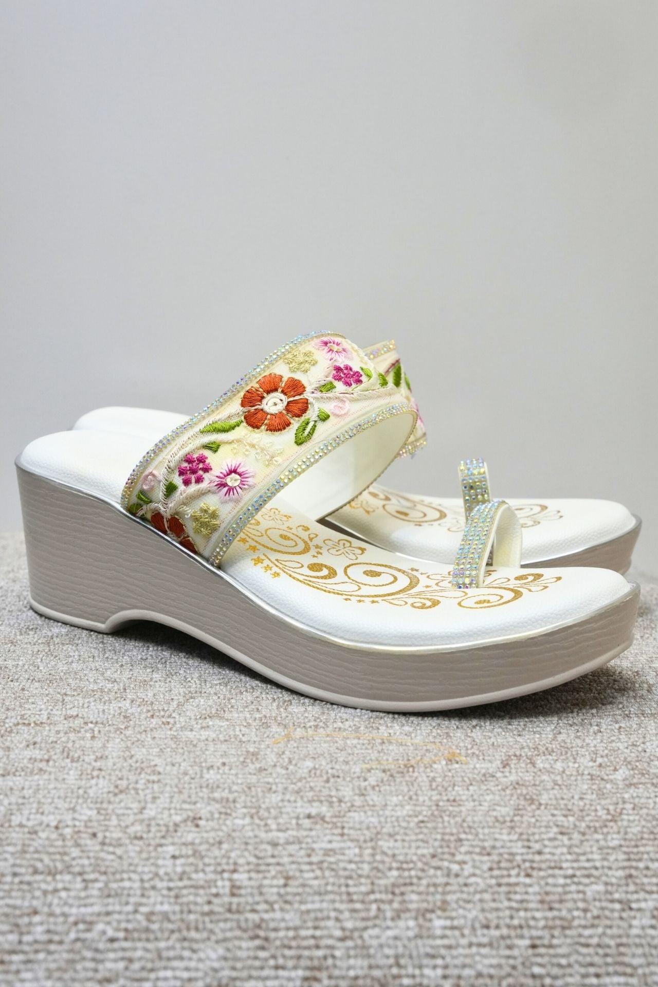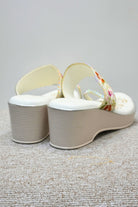 White Floral Embroidered Wedge Sandal