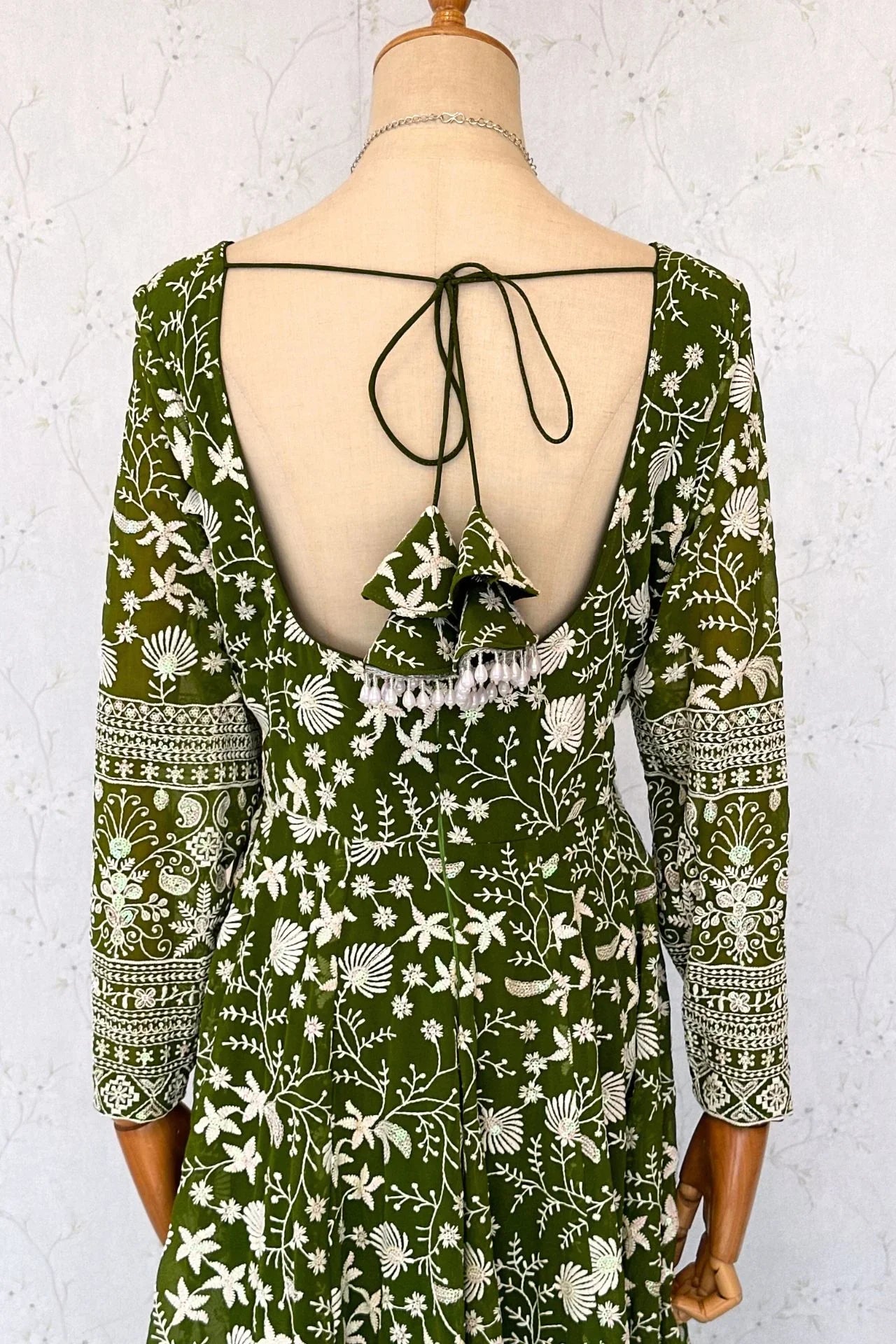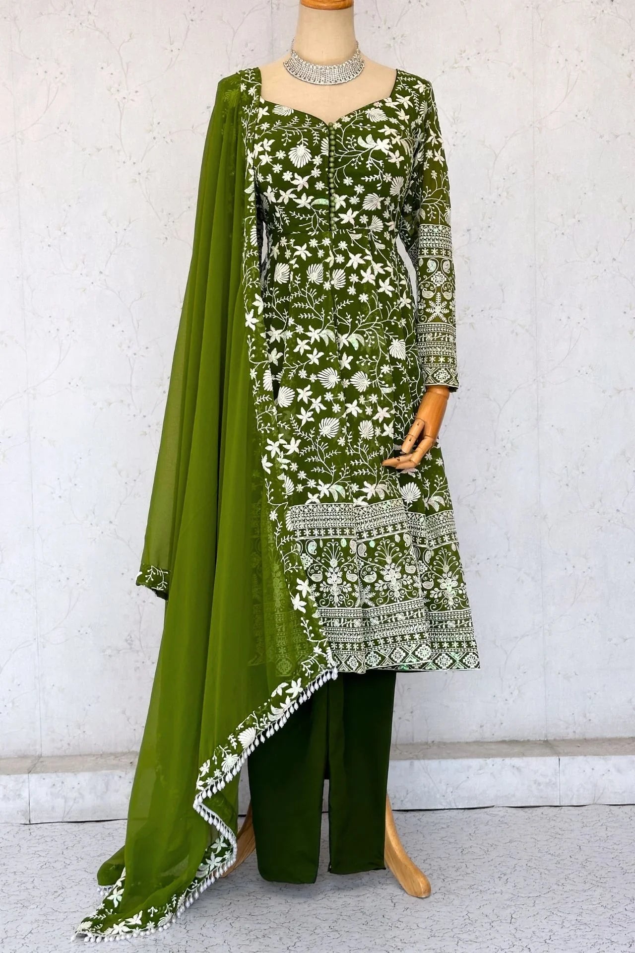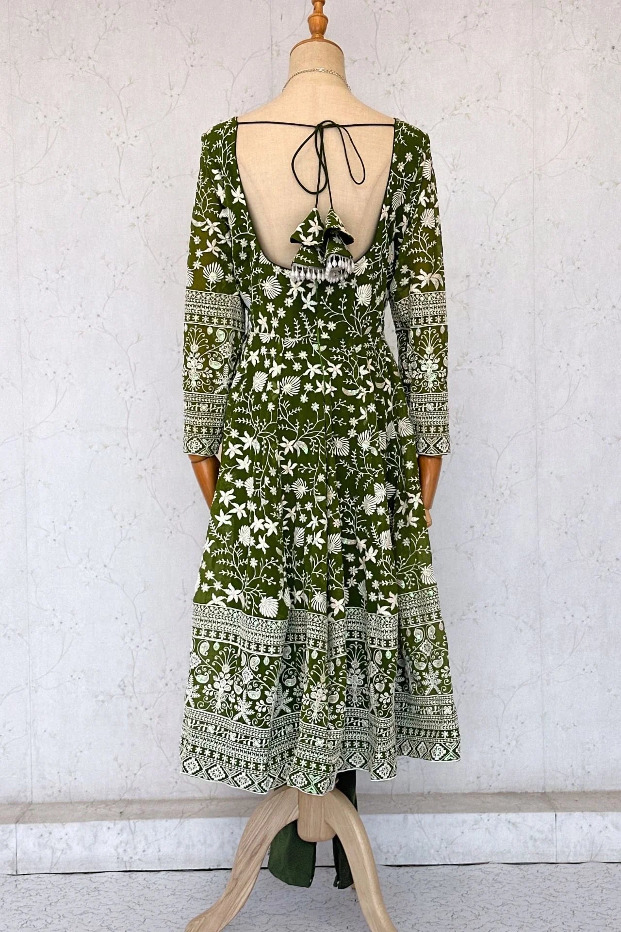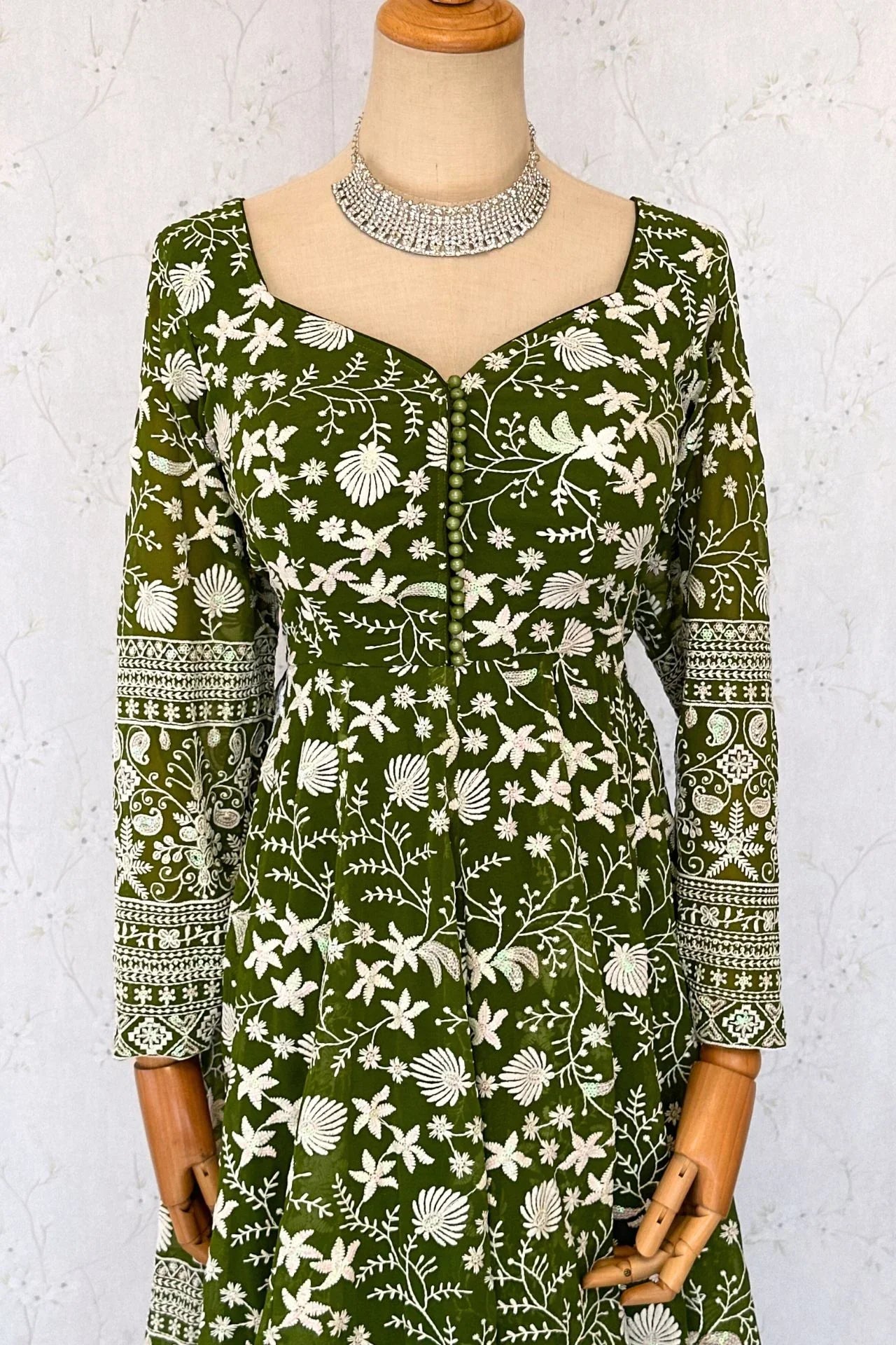 Floral Design Anarkali Kurta In Mehendi