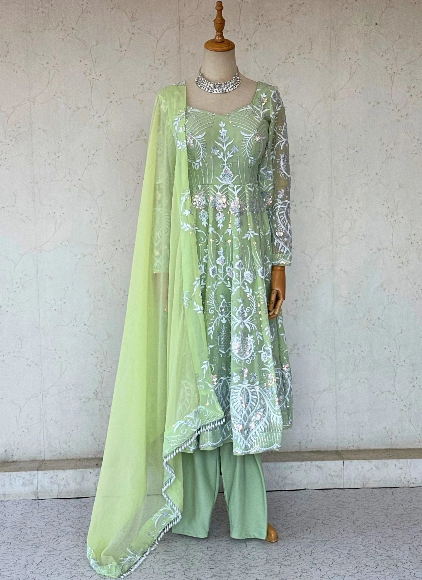 Lightgreen Anarkali Kurta With Thread Embroidered