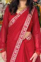 - chiffon saree fabric adorned with intricate Swarovski embellishments with Sada Saubhagyavati broder.