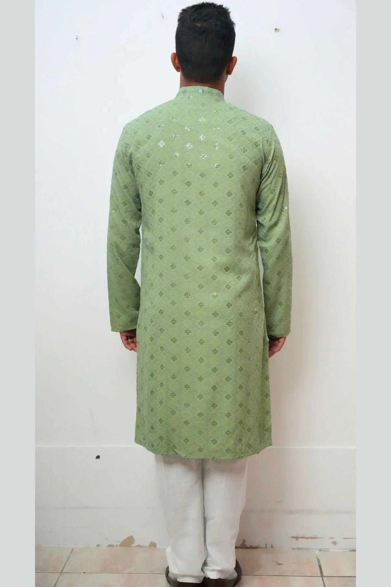Saga Green Chikankari Long Kurta for Men