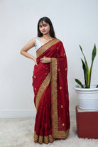 Vichitra Silk Saree With Gold Zari Work On Maroon