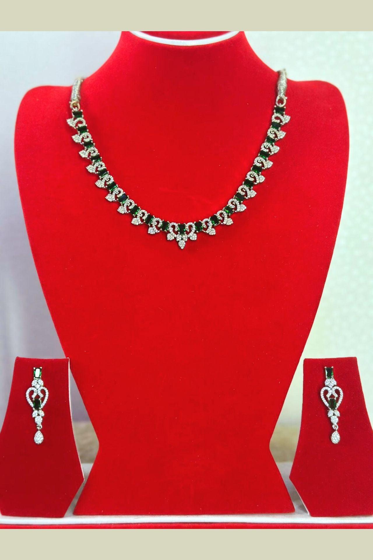 - Beautiful handmade CZ American diamond white stones necklace, earrings Set