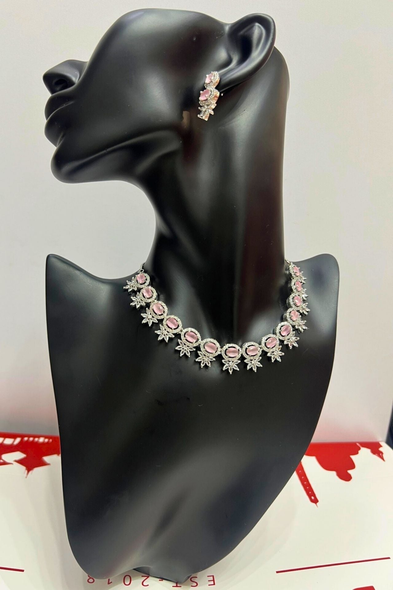 Blush Pink Oval American Diamond Necklace Set