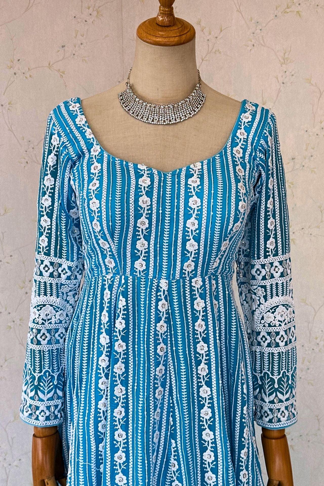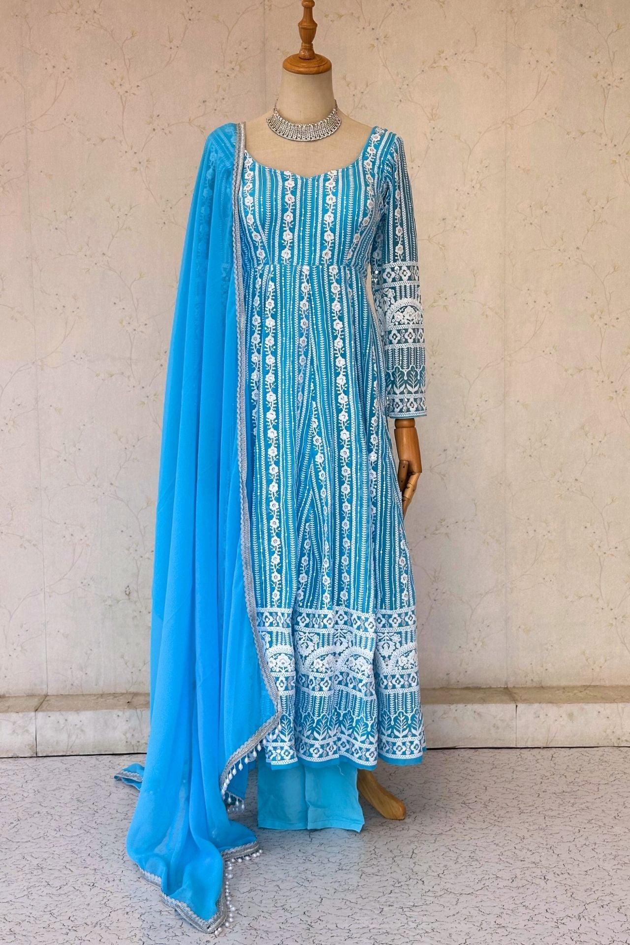 Heavy Embrodery Anarkali Kurta Set In Skyblue