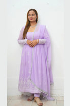 Lavender Georgette Anarkali Suit with White Thread Embroidery