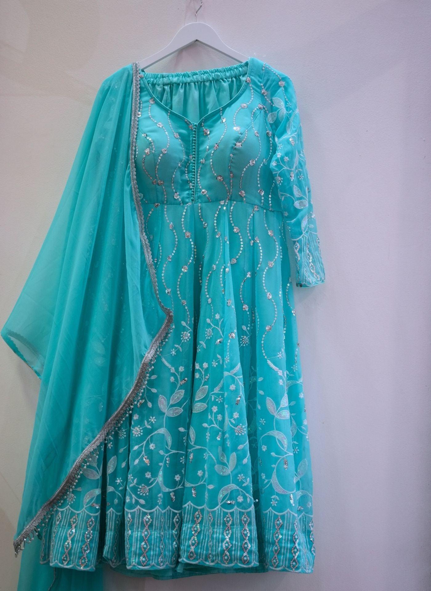 PlusSize Anarkali Kurta Set With Sequence Work In SkyBlue