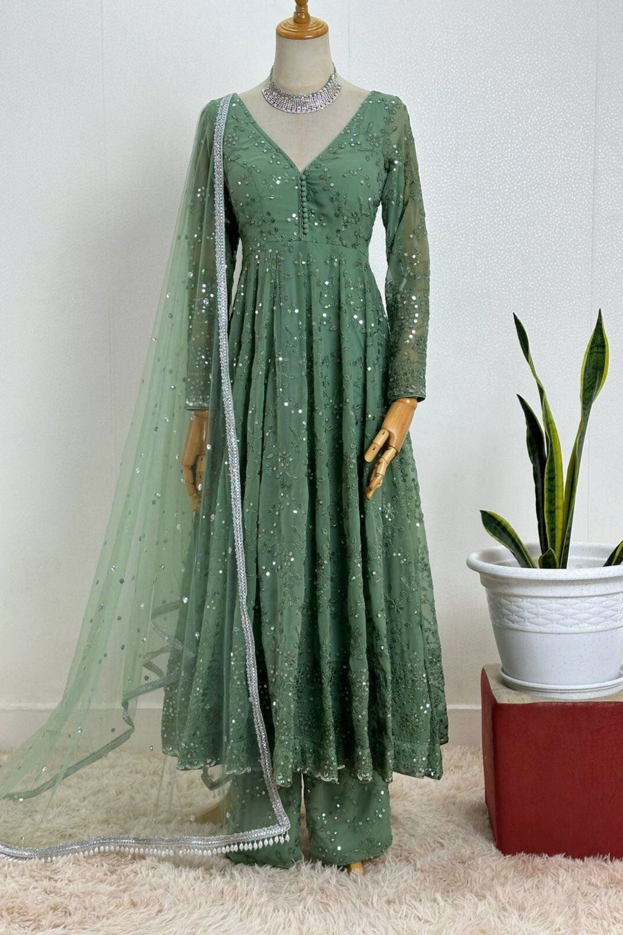 Sage Green Georgette Anarkali Set