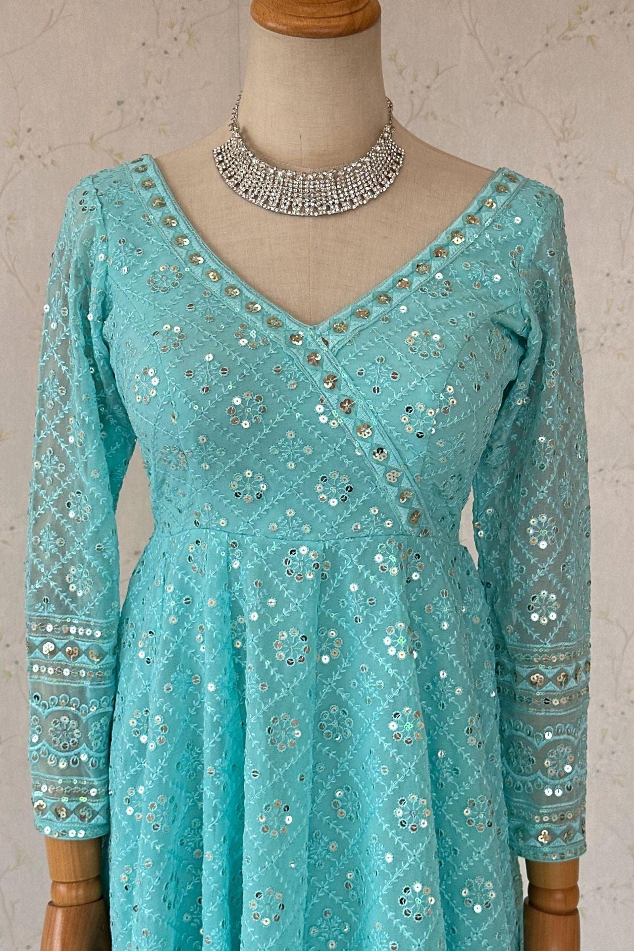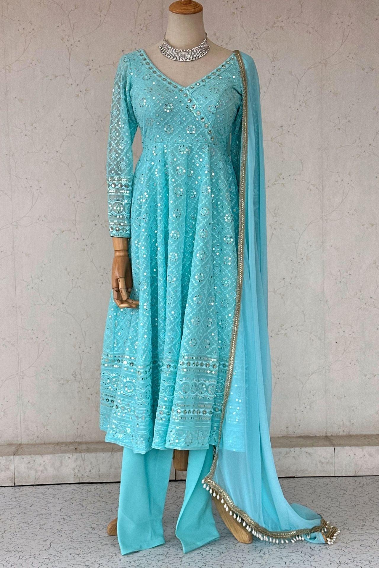 - The Anarkali Kurta Set includes a matching dupatta and stunning ensemble of 3 pieces, including straight churidar pants.