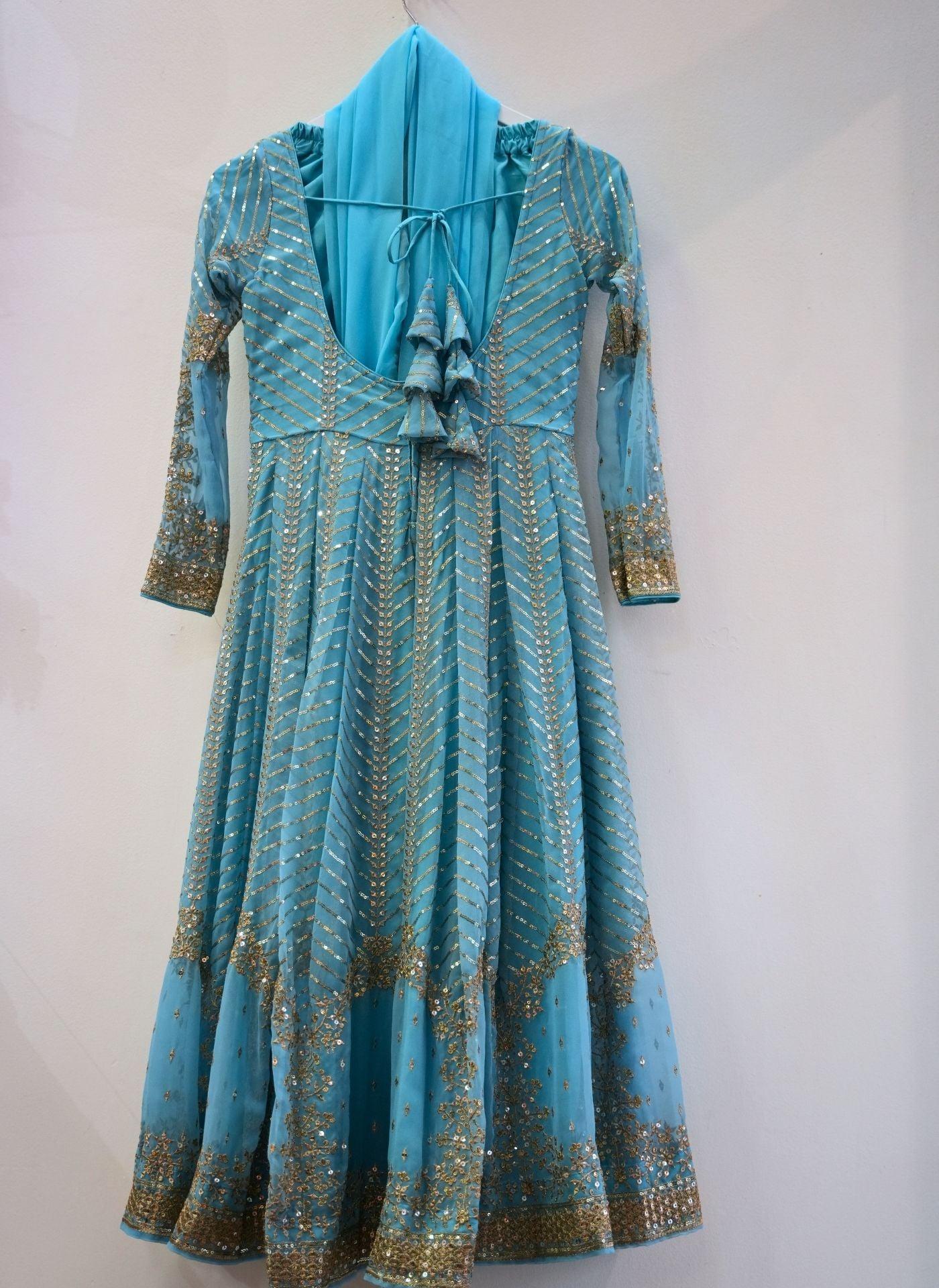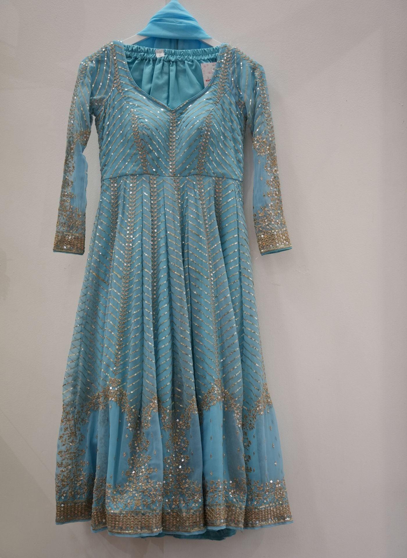 Skyblue Anarkali Set With Gold Embrodery