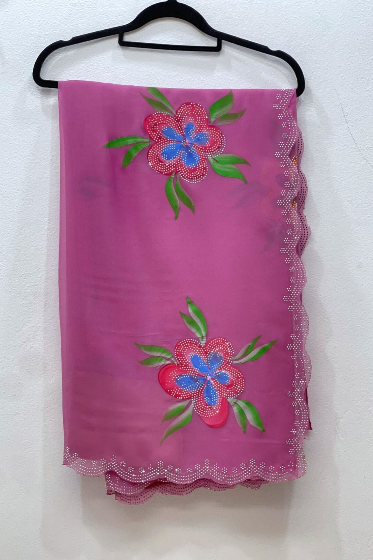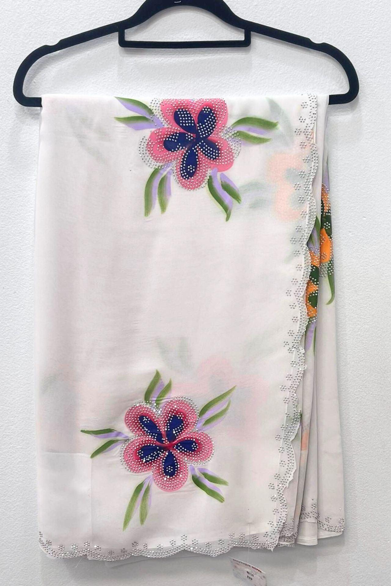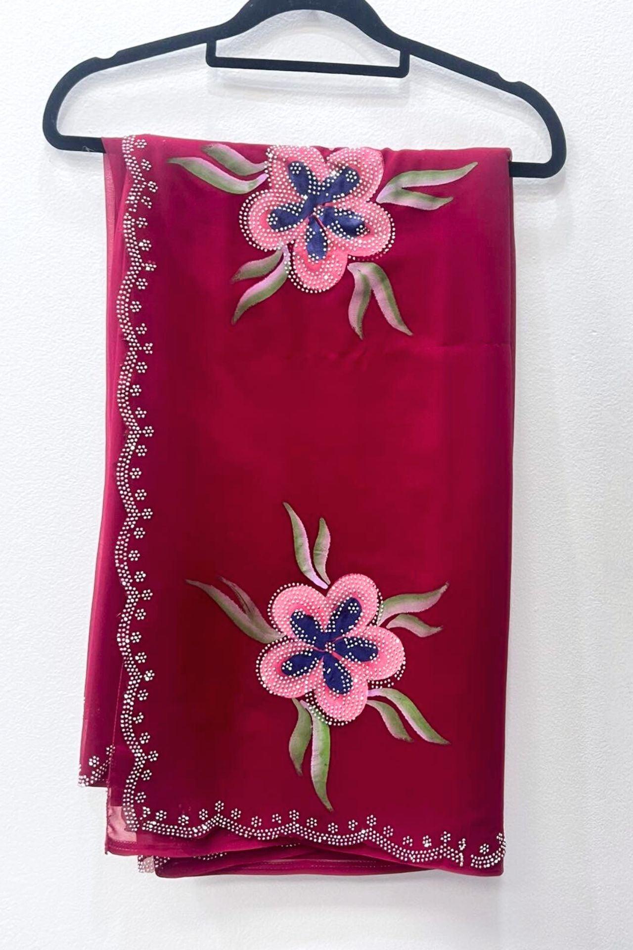 Georgette Saree With Sequins Patch And Hand Paint Flower