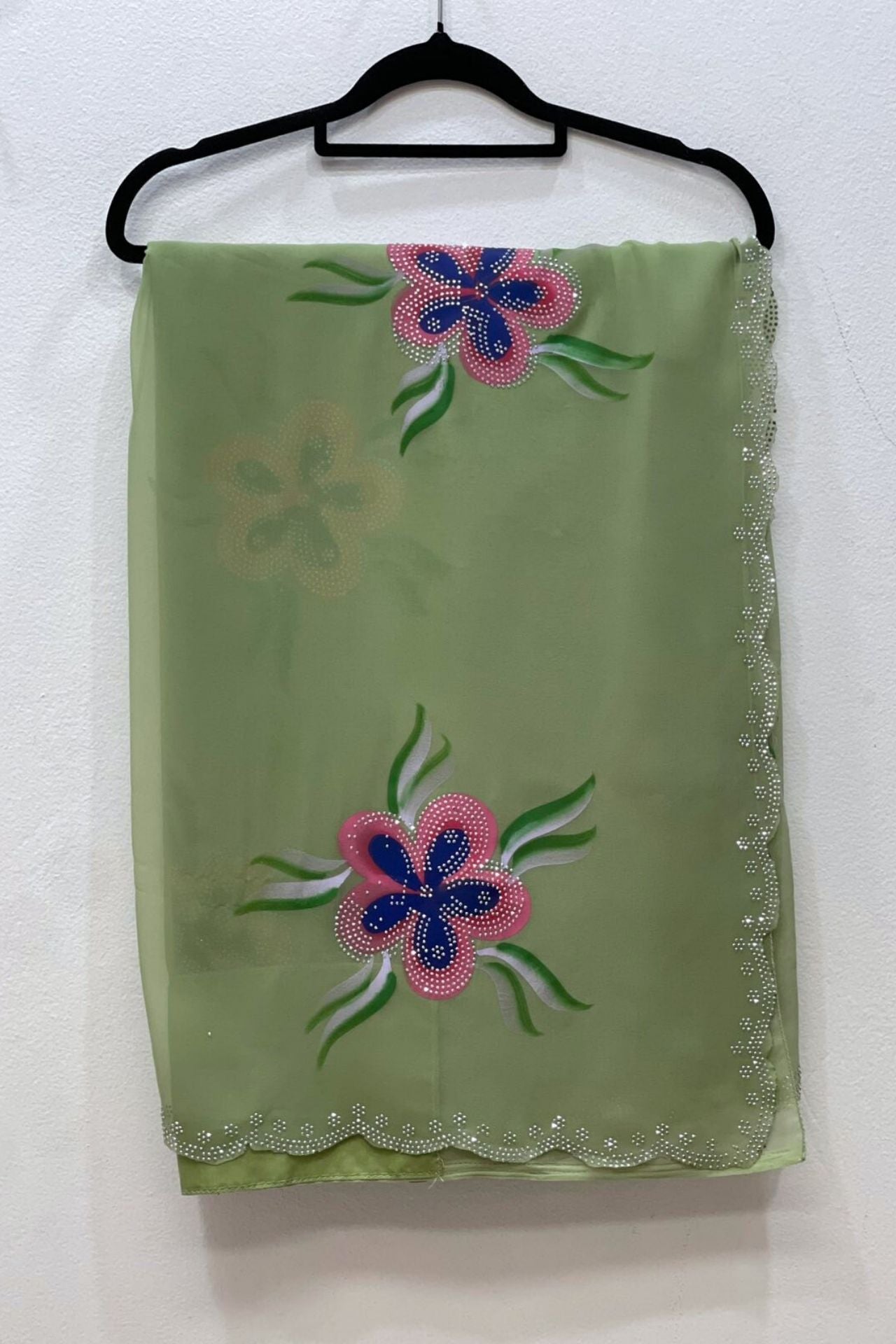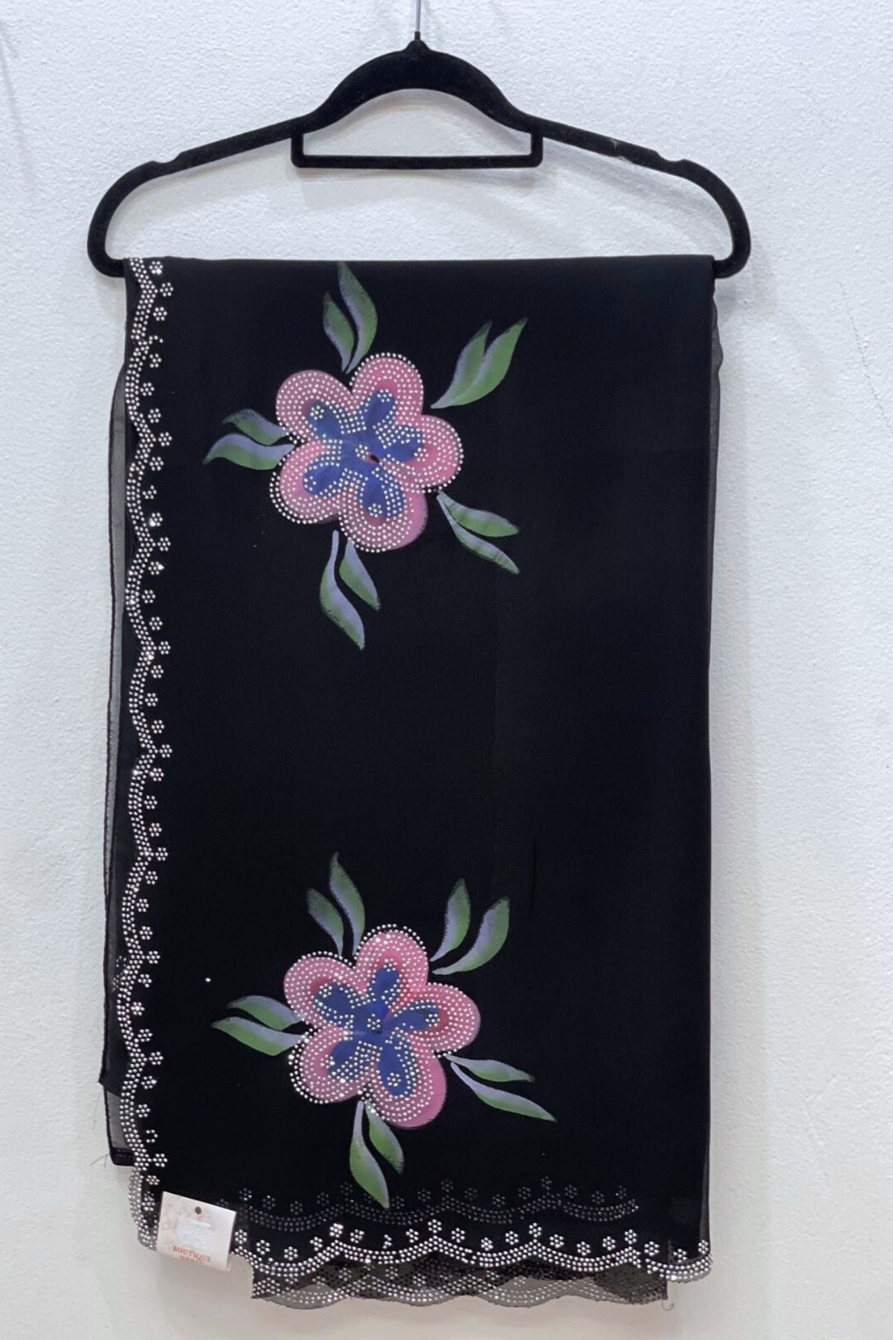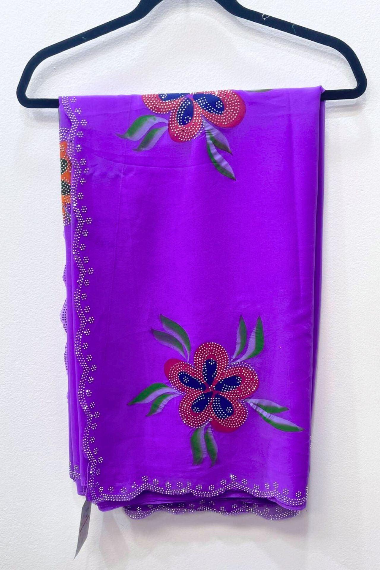 Georgette Saree With Sequins Patch And Hand Paint Flower
