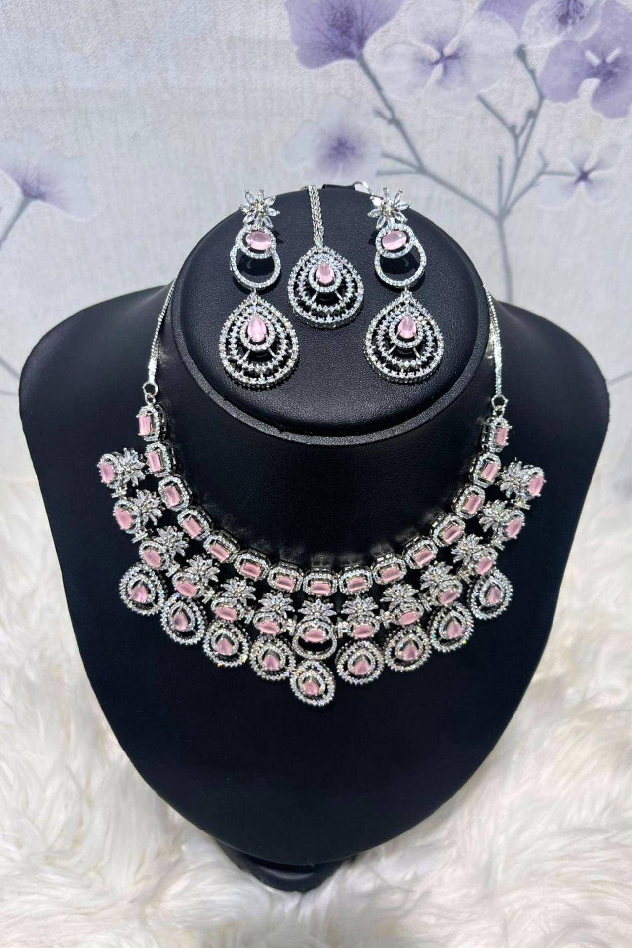 Rose Gold Silver Plated AD Necklace Set with Bindi