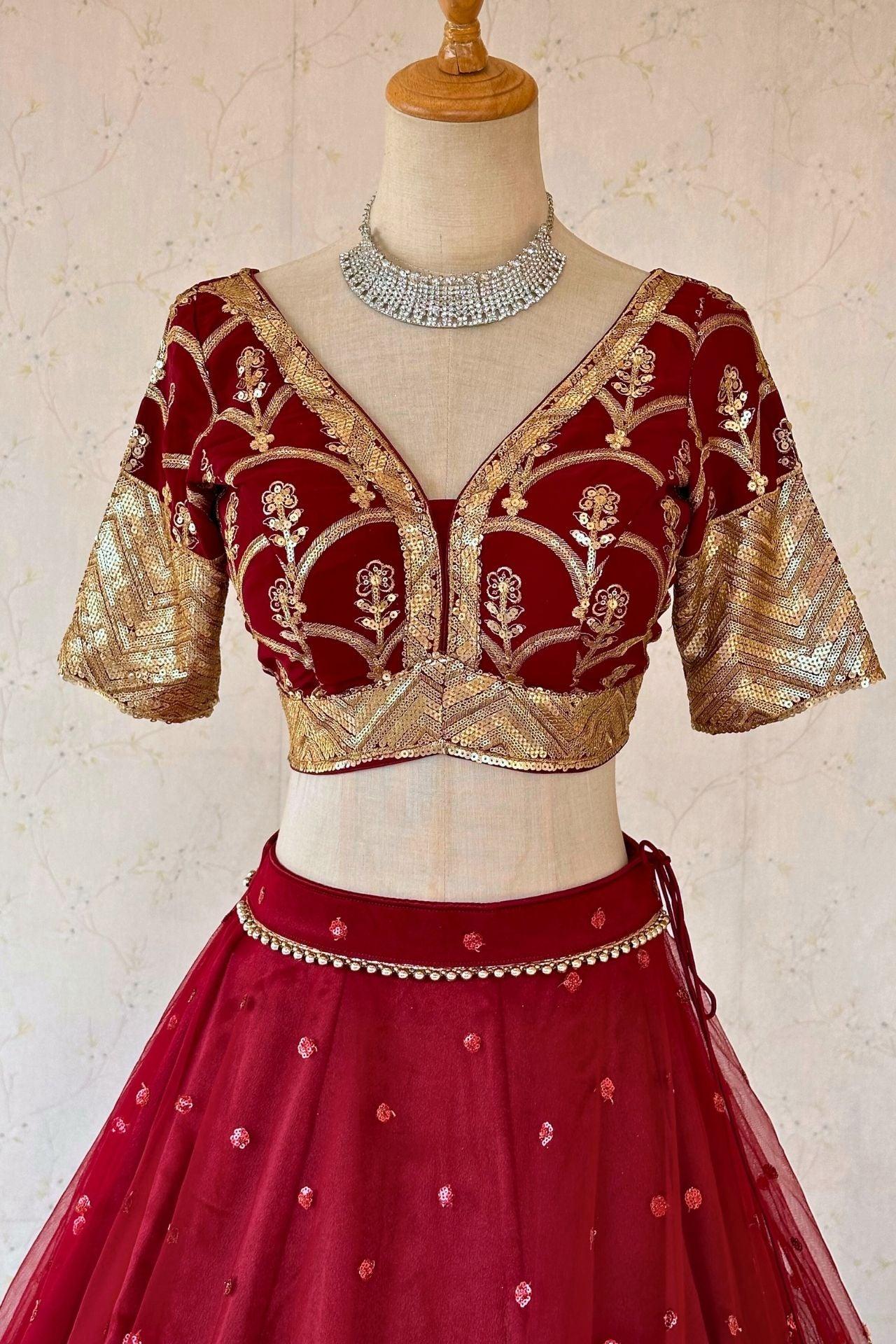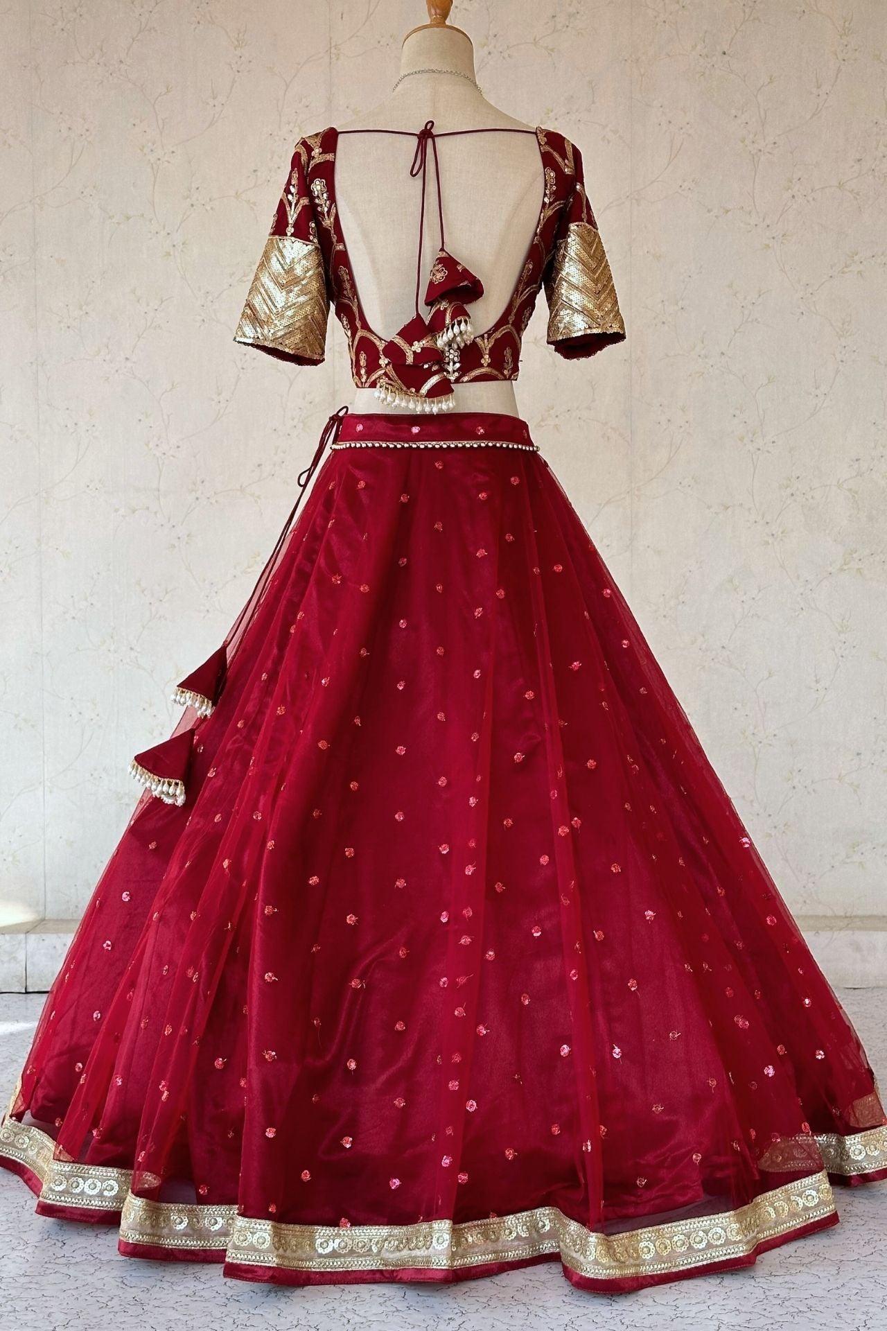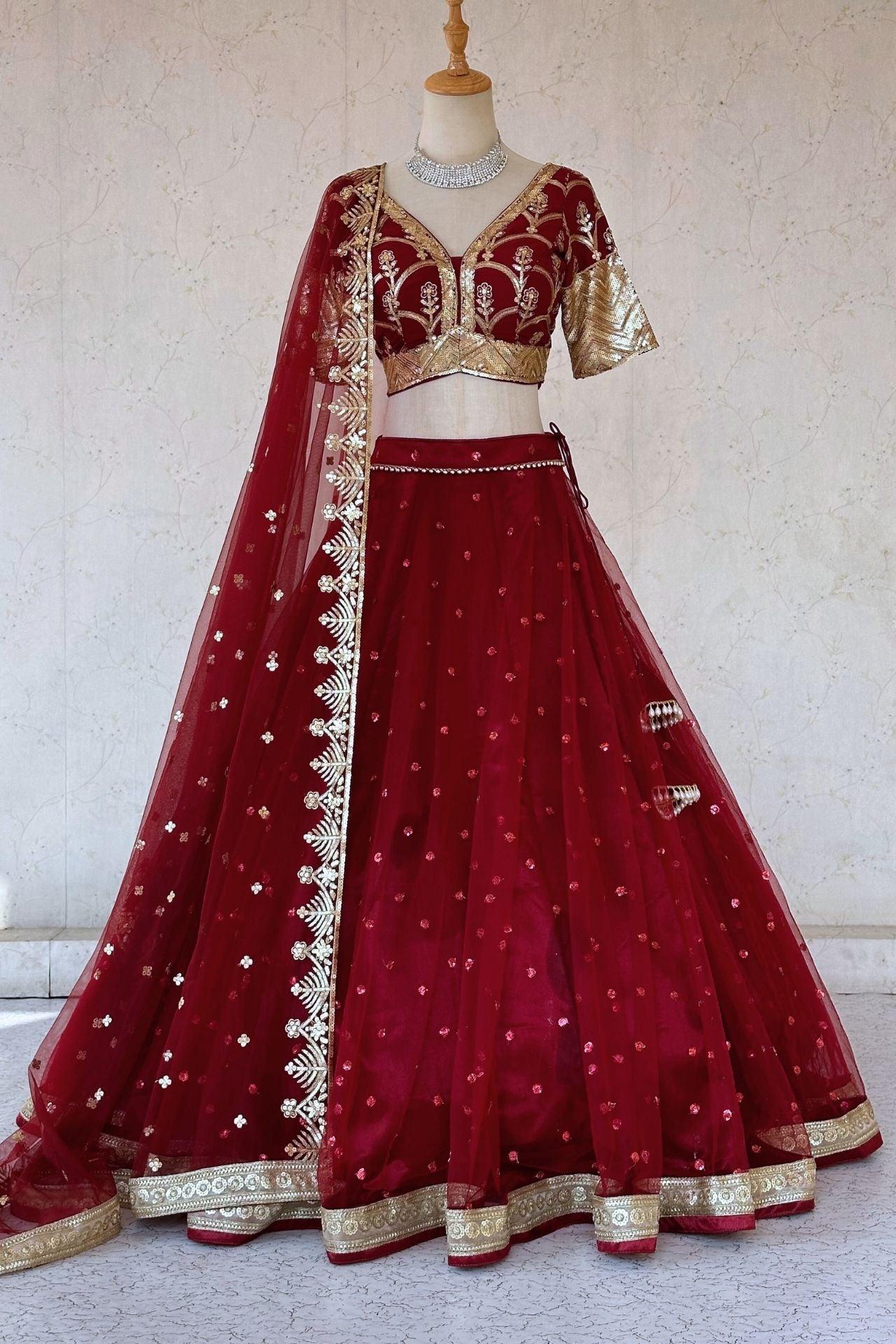 Maroon Lehenga Set In Net With Heavy Gold Embroidery Work