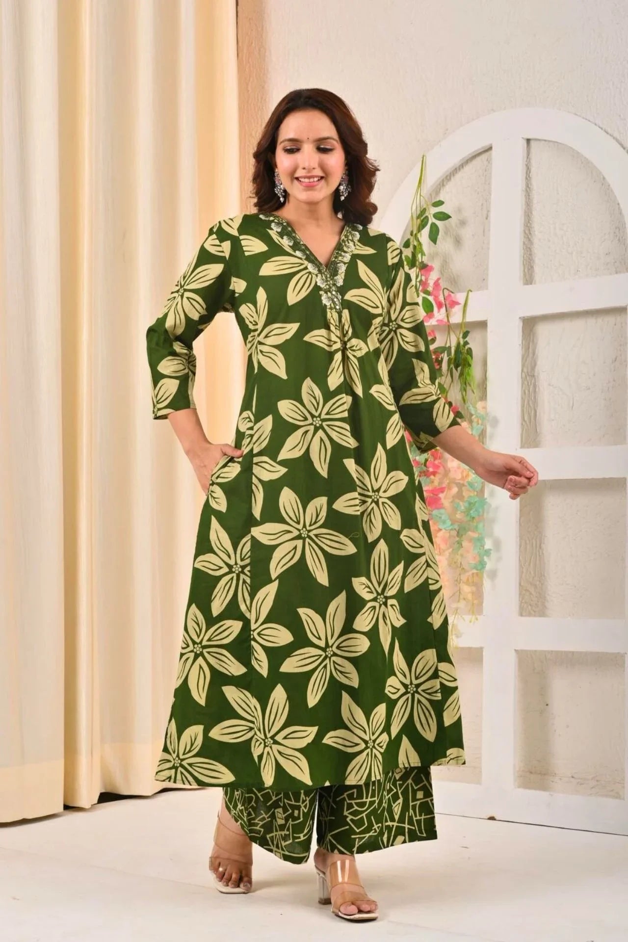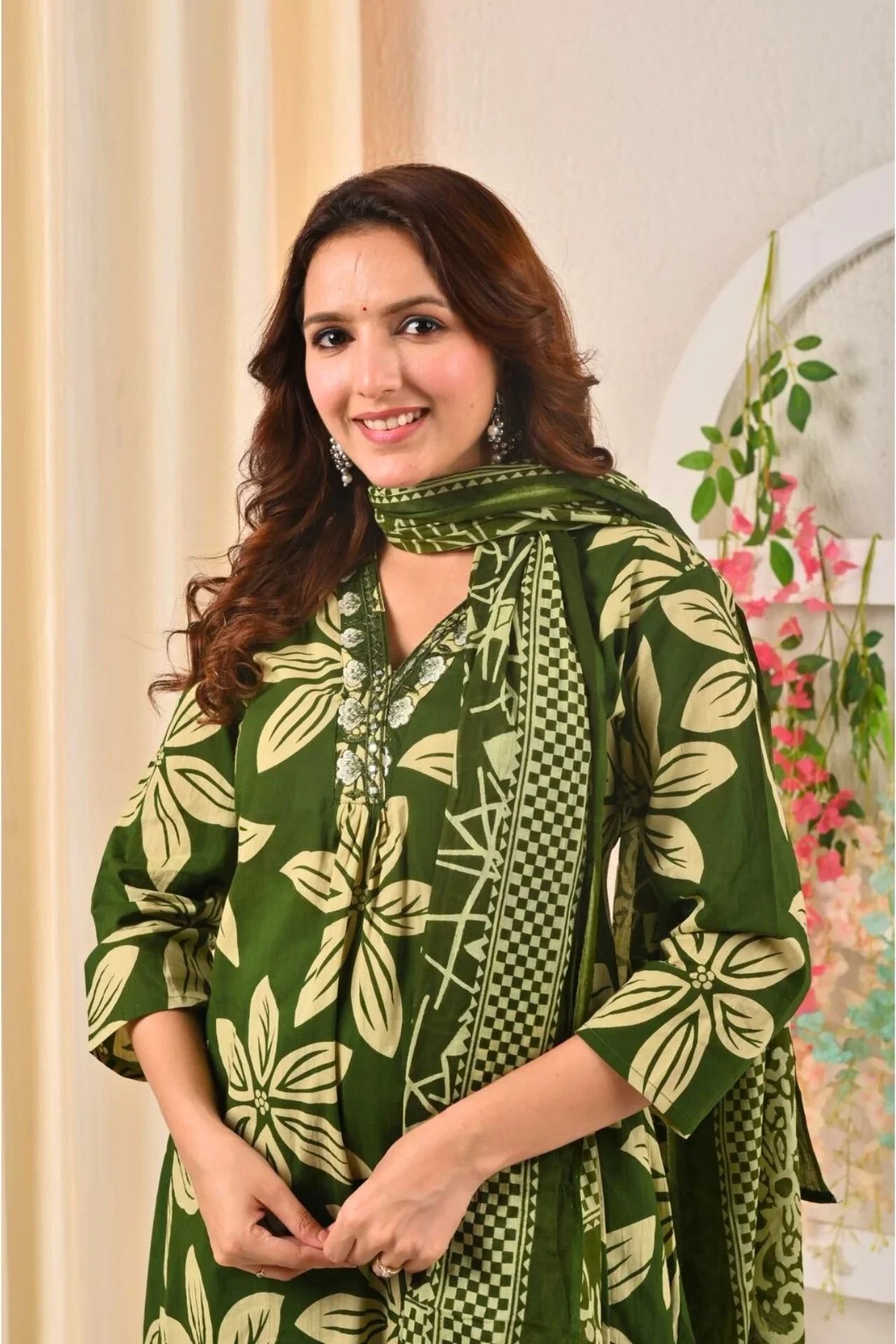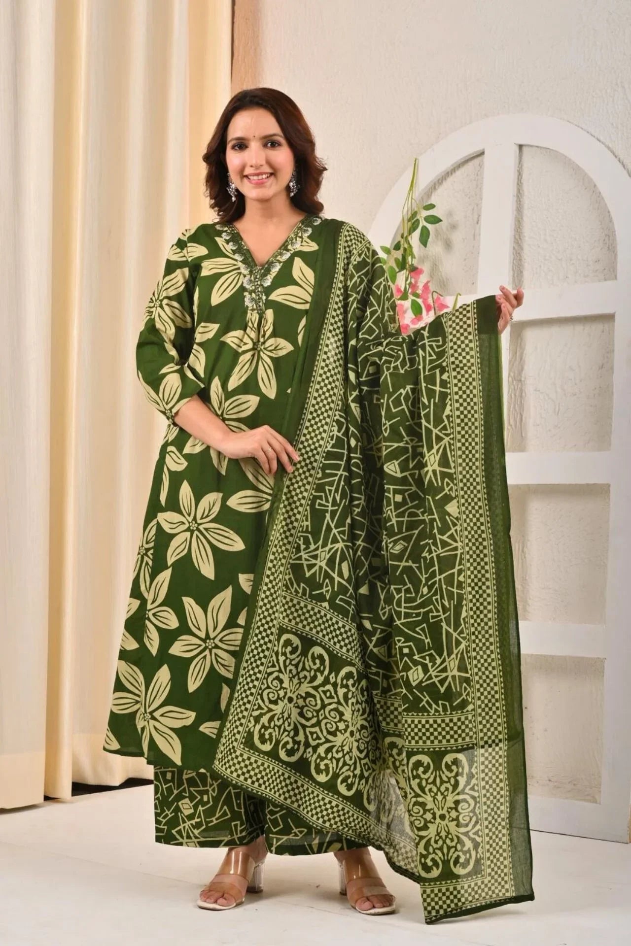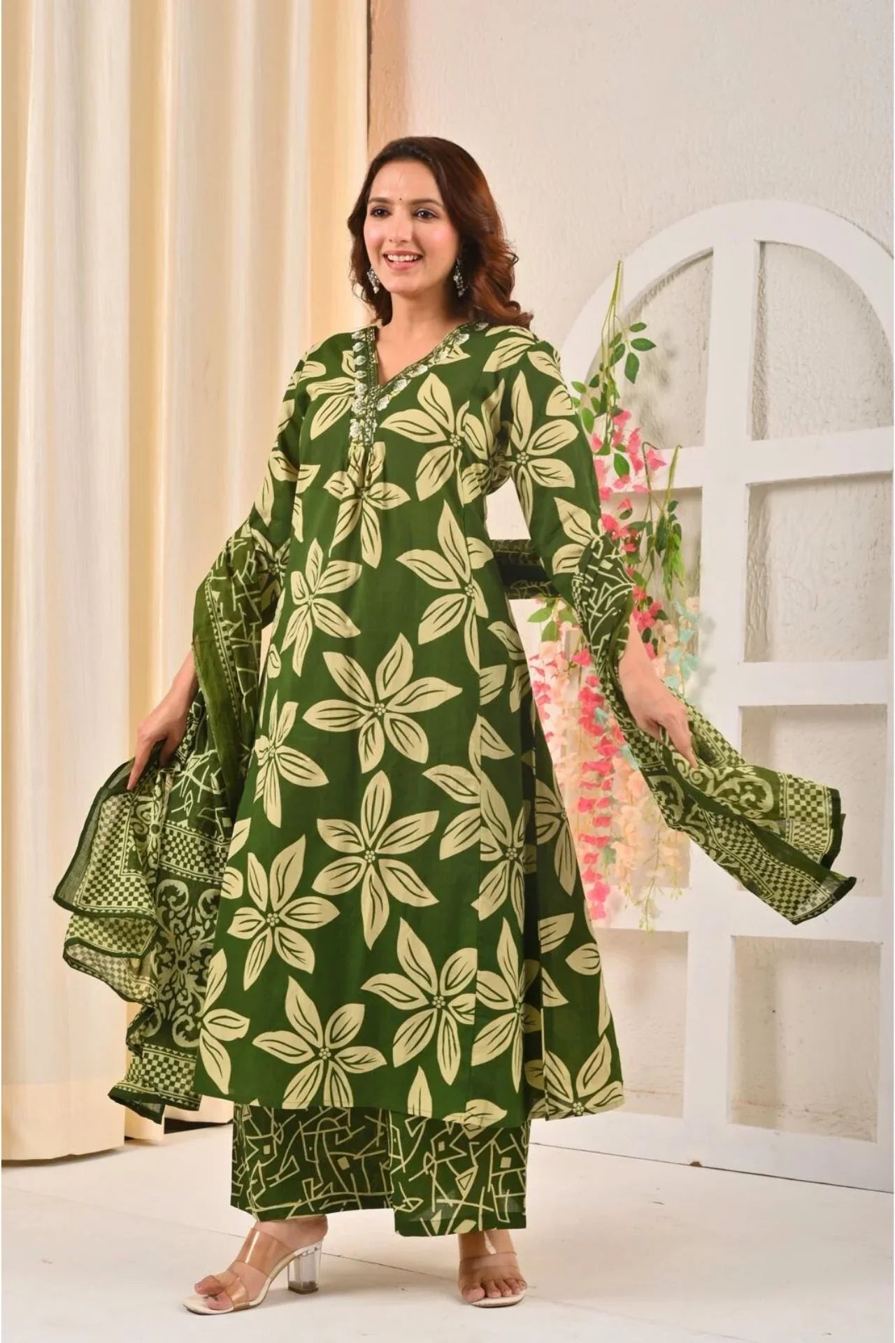 Green Kurta Set With Sequin Work Dupatta