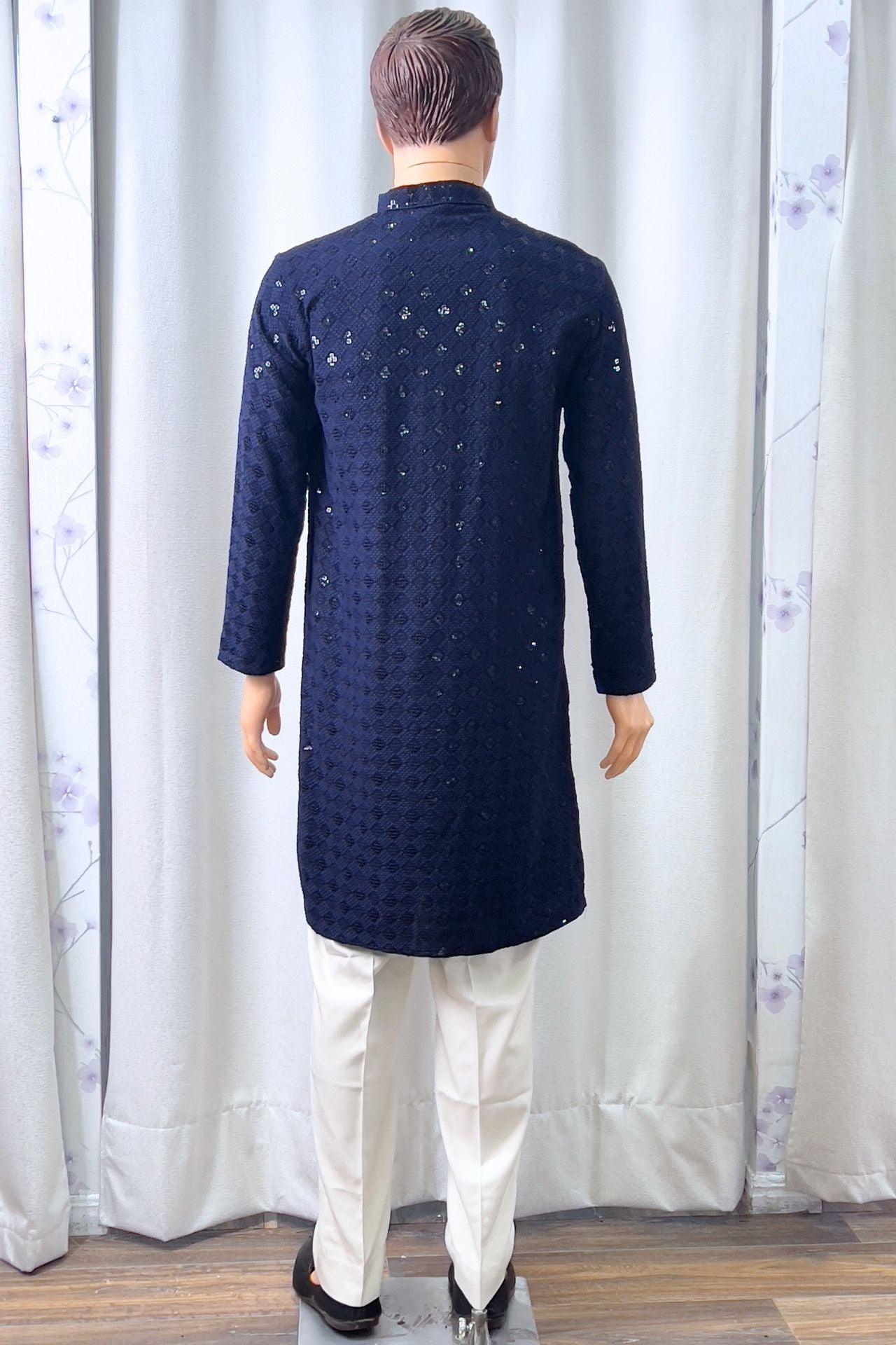 Chikankari Men's Kurta Set In Royalblue