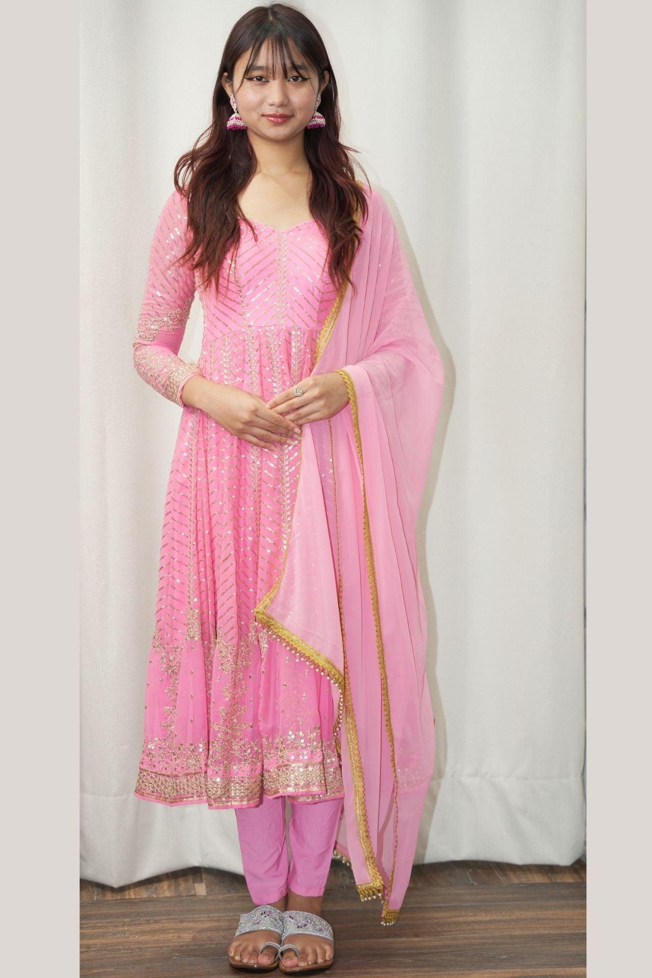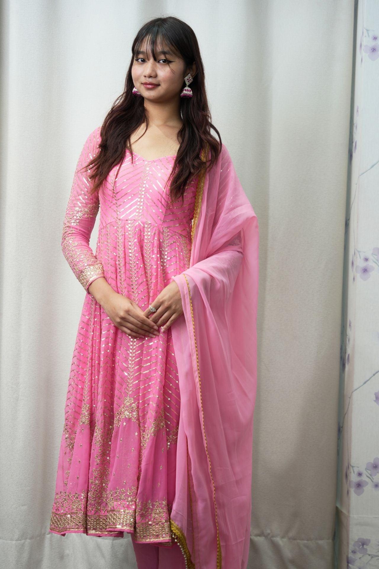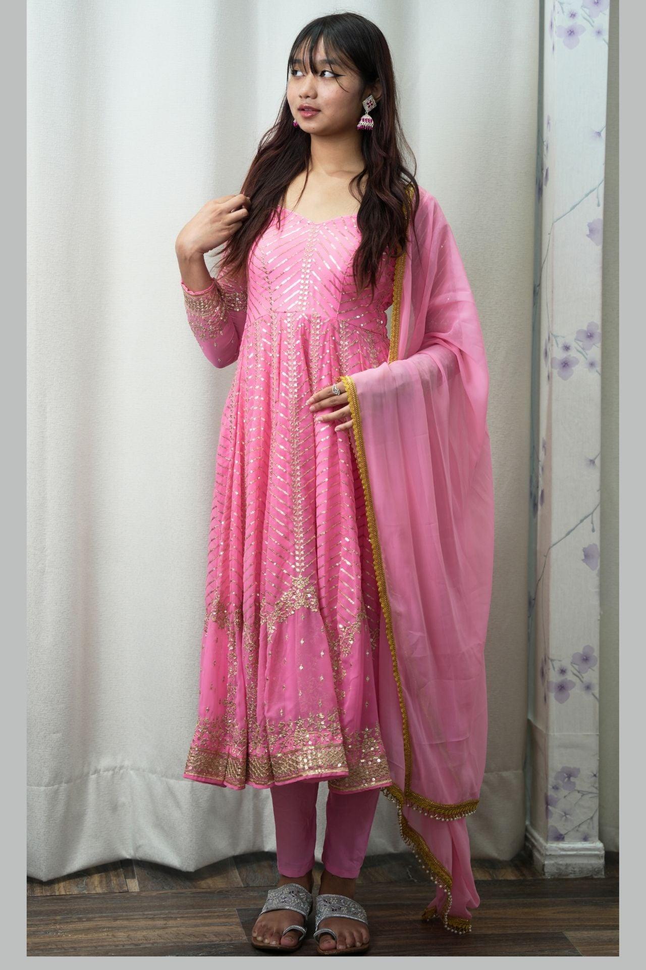 Pink Anarkali Set With Gold Embrodery