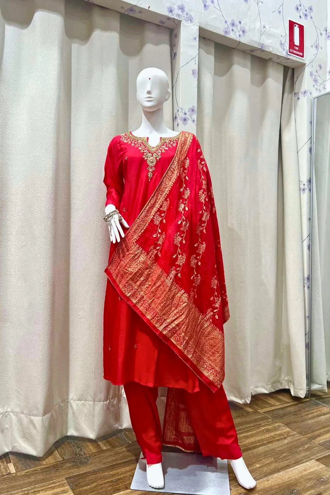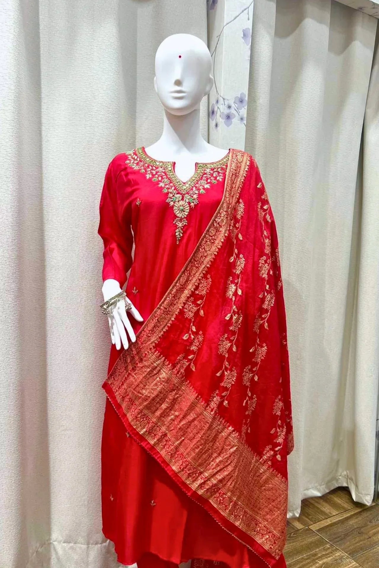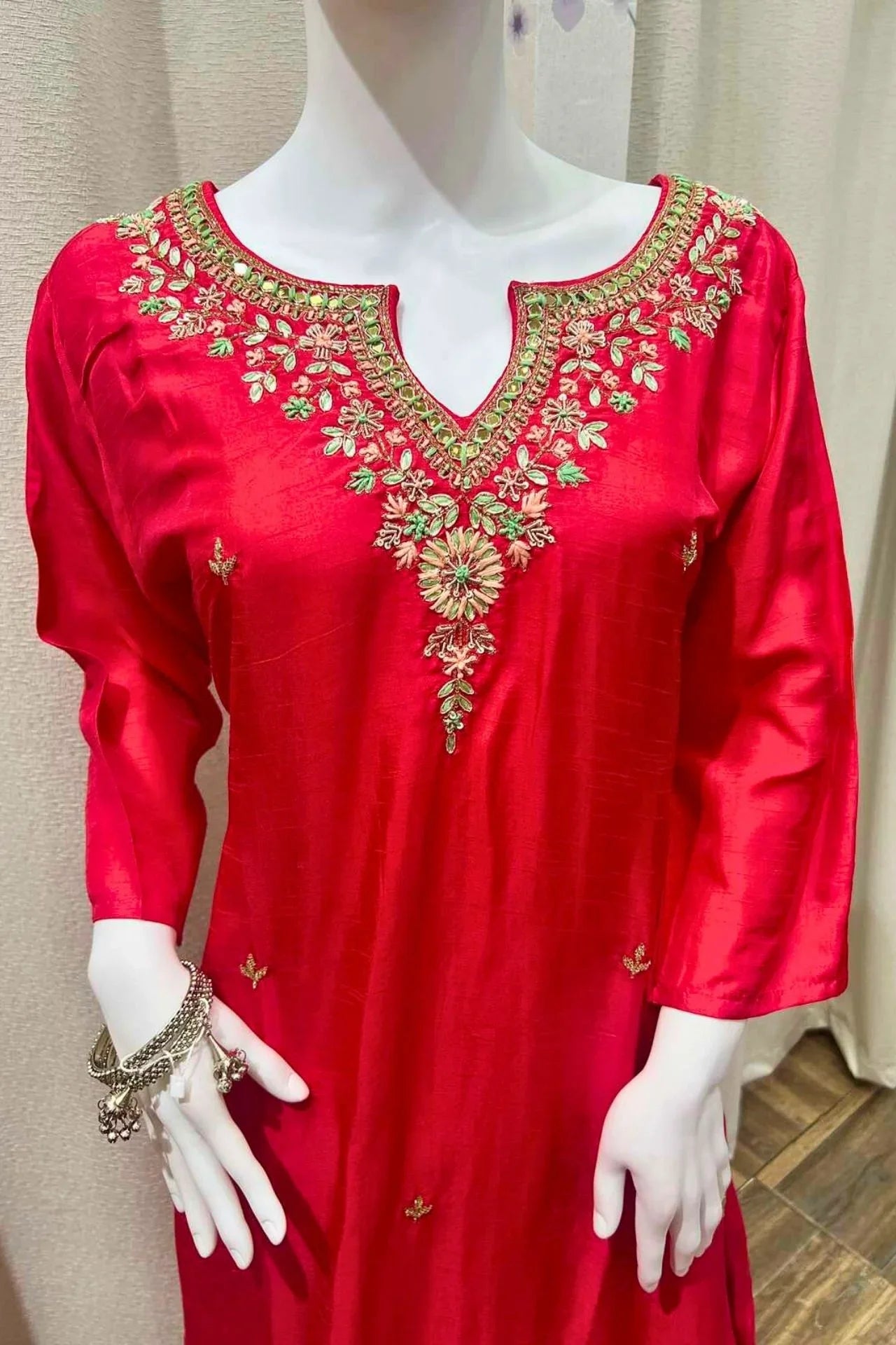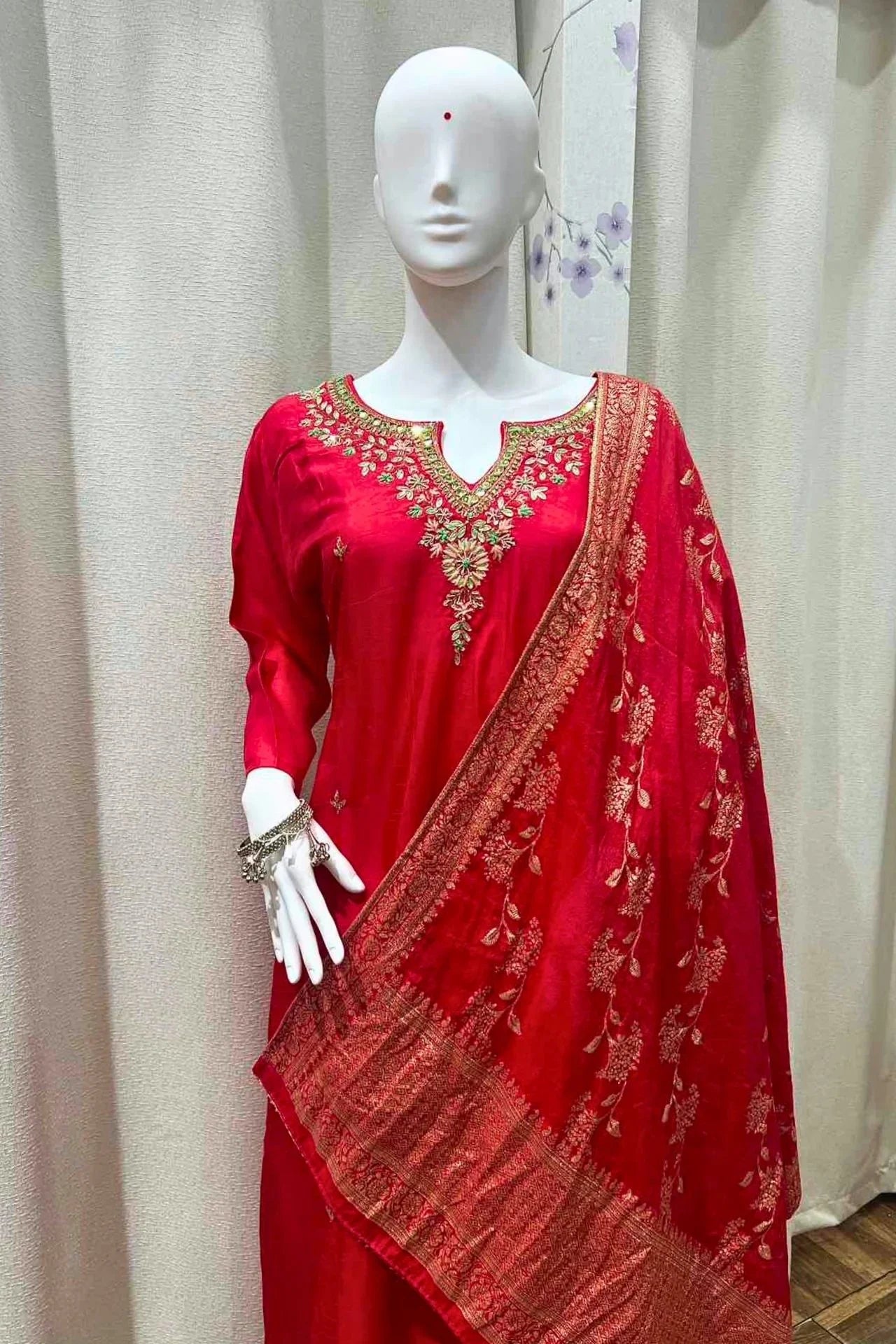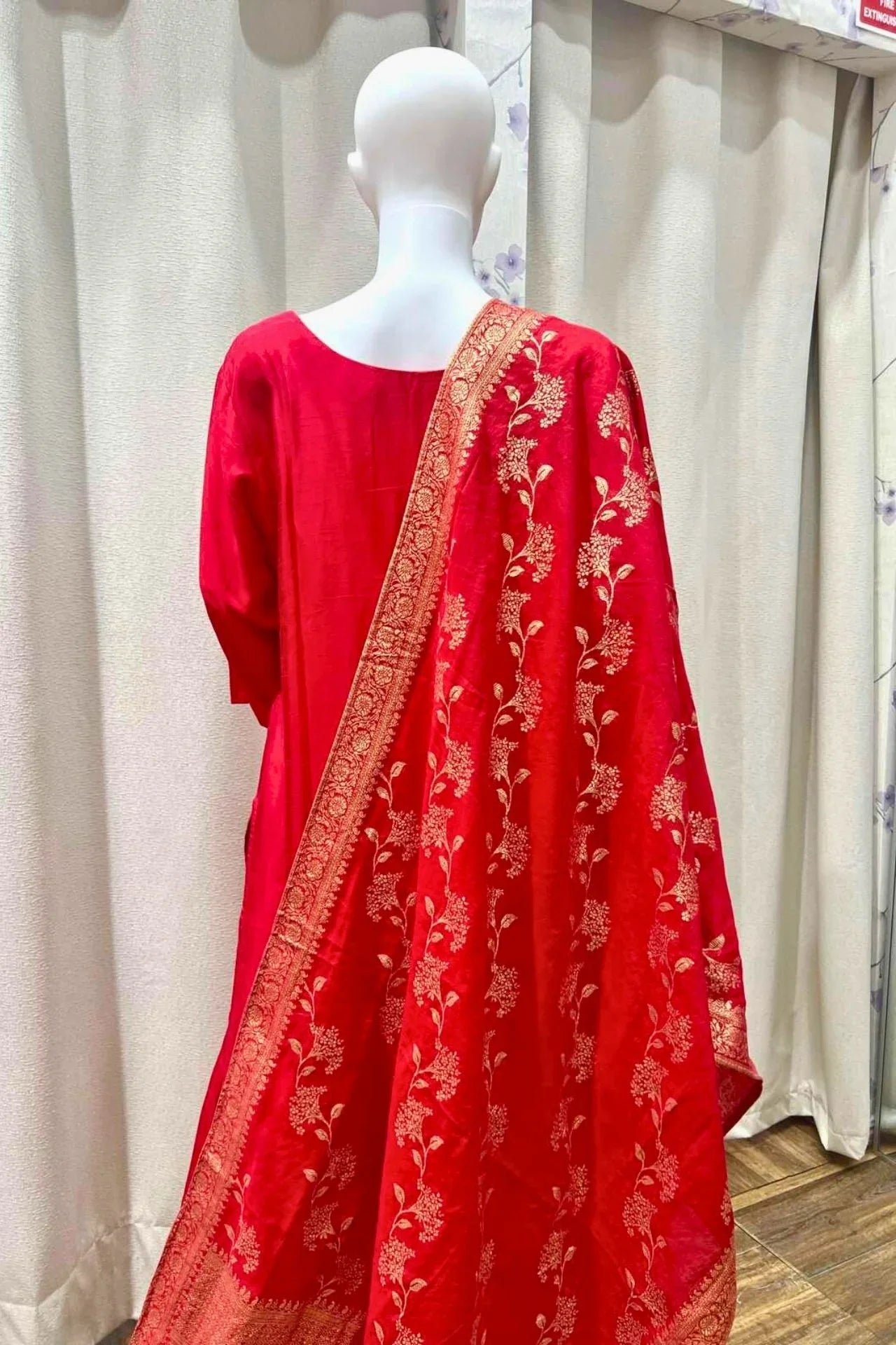 Ruby Red Silk Embroidered Kurta Set