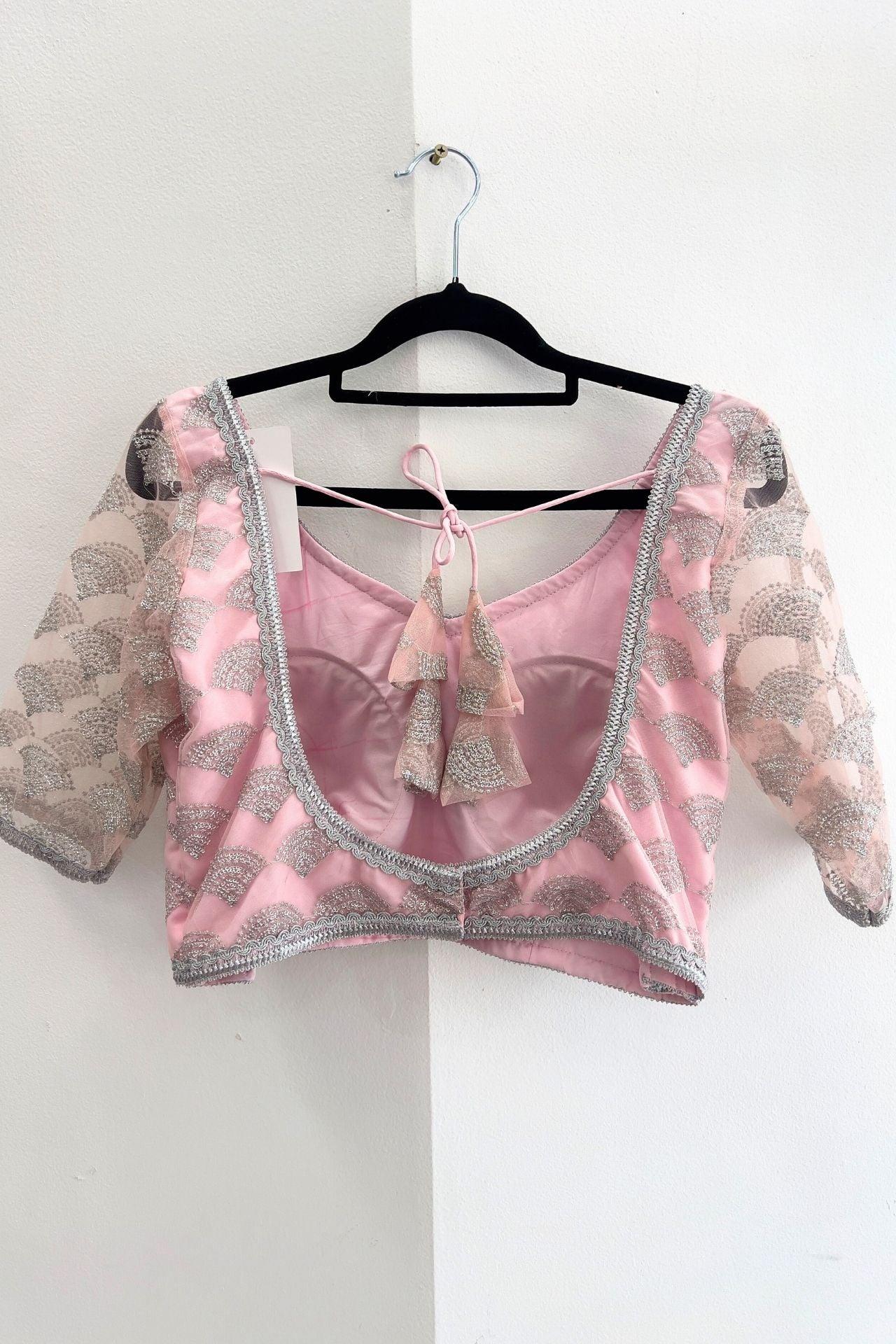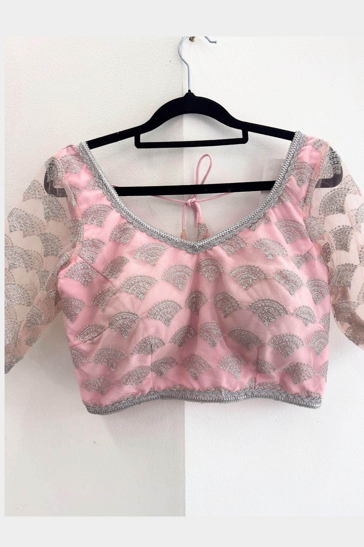 Pink Net Blouse with Silver Embroidery