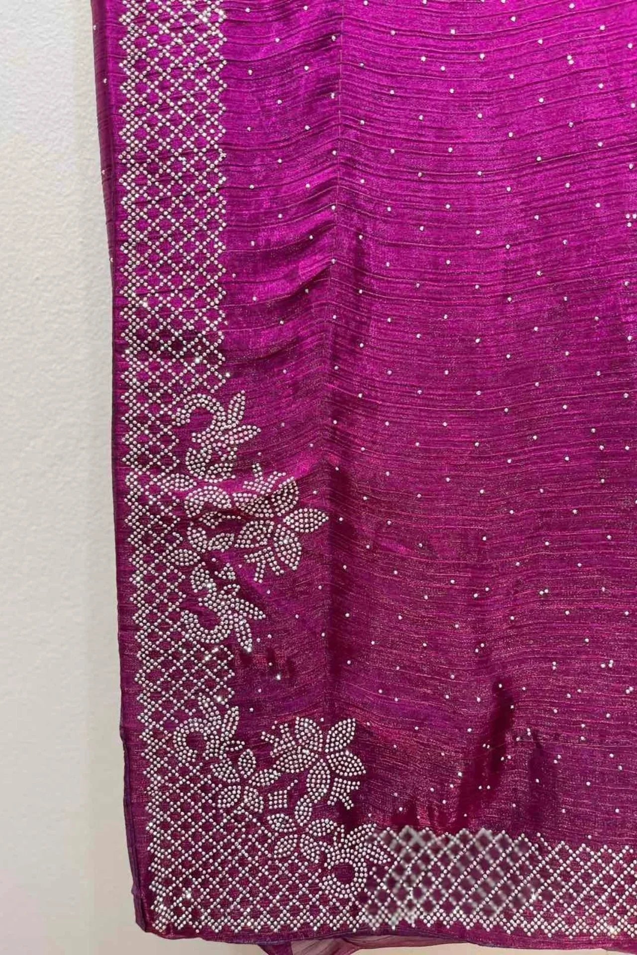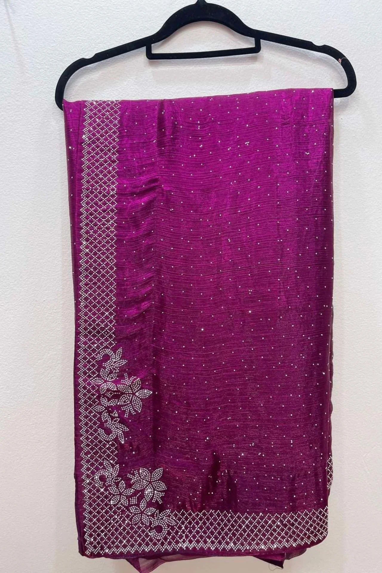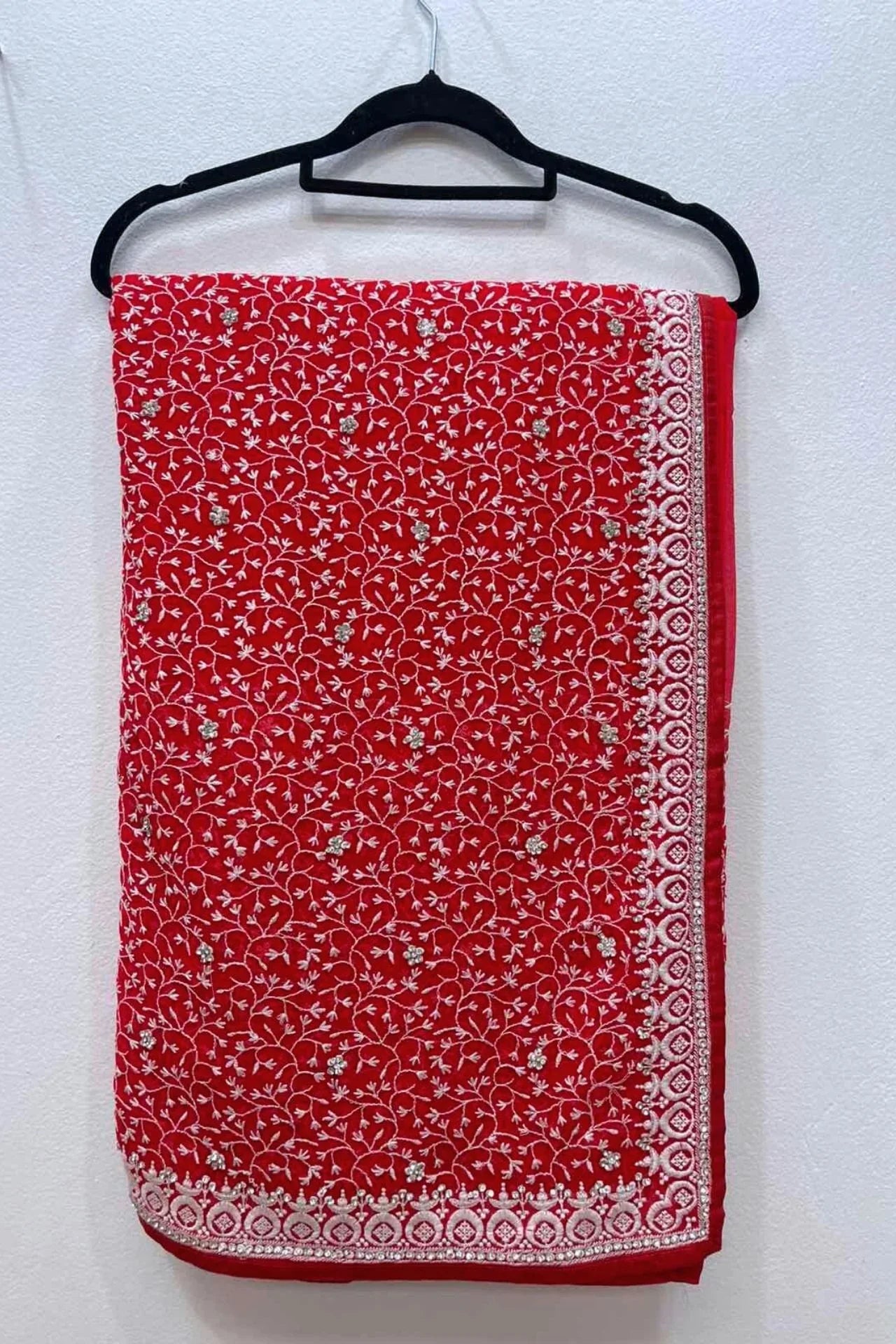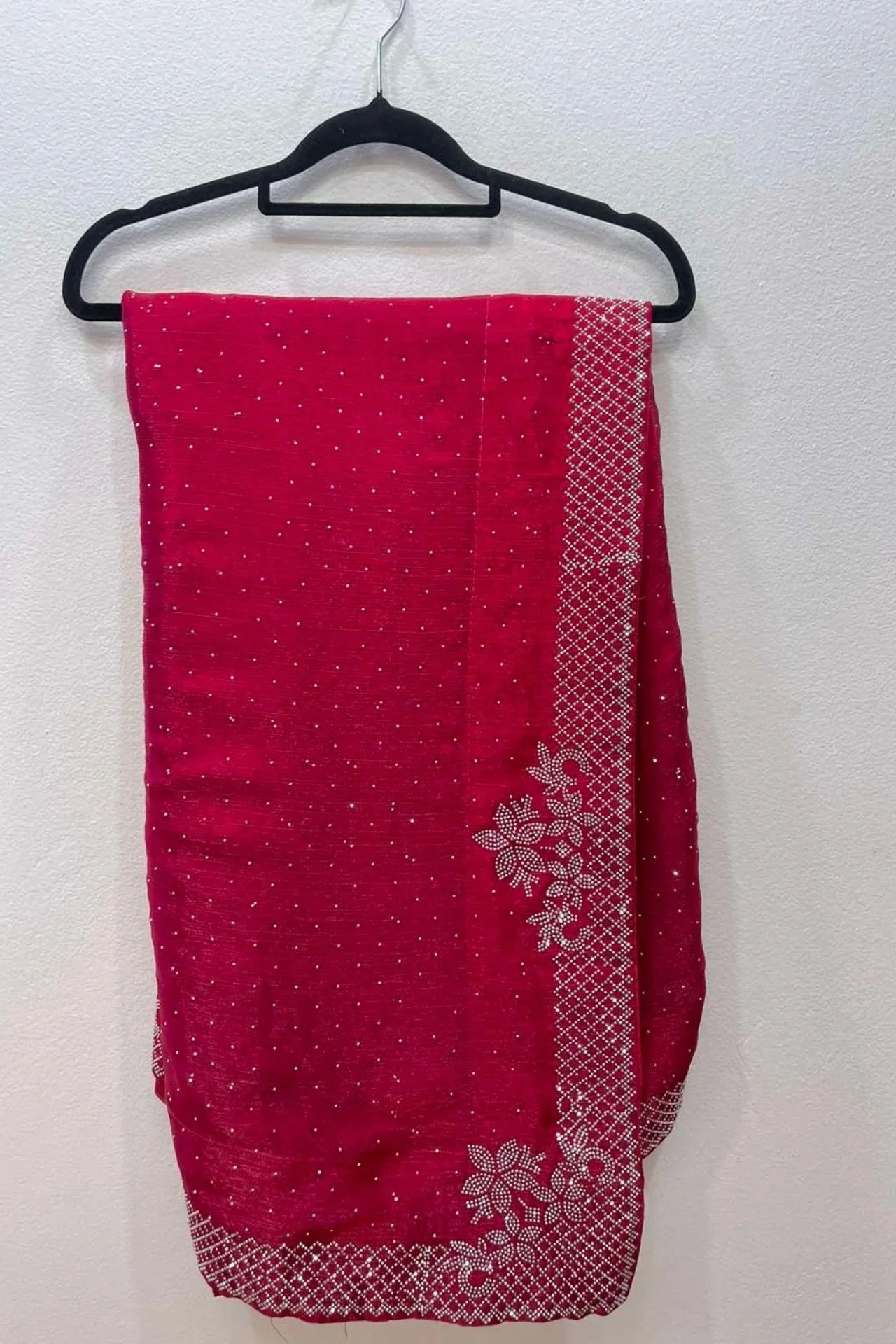 Georgette Saree With Sequins Patch And Hand Paint Flower