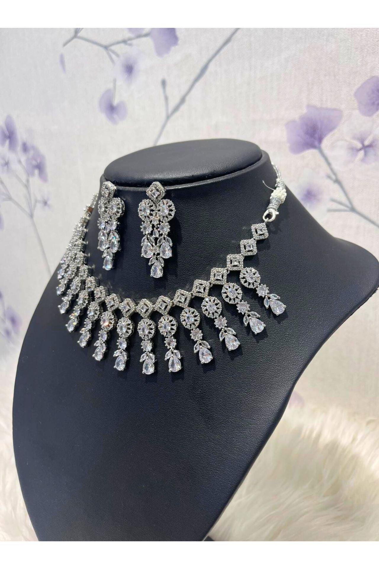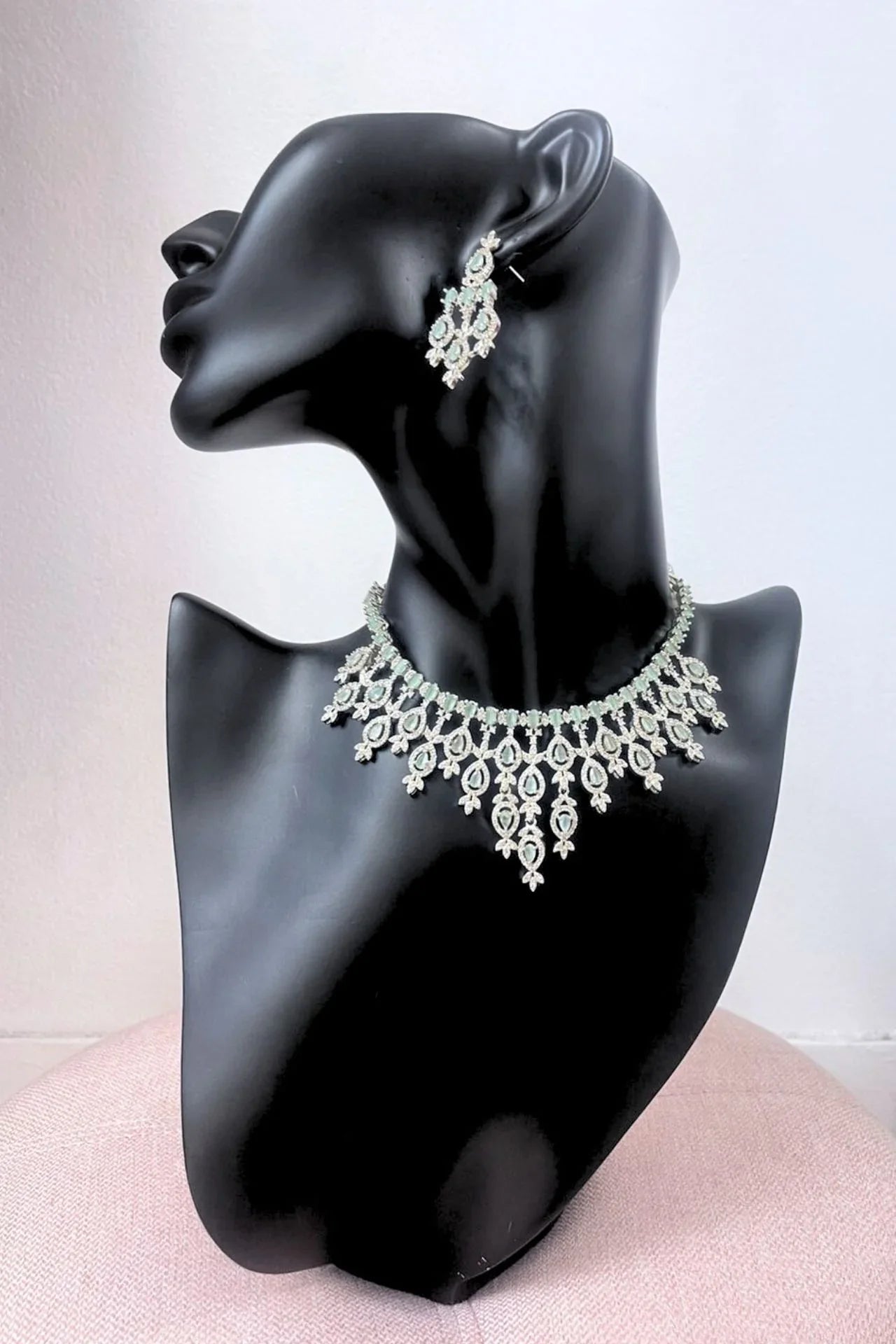 SkyBlue Stone AD CZ Necklace and Jhumka