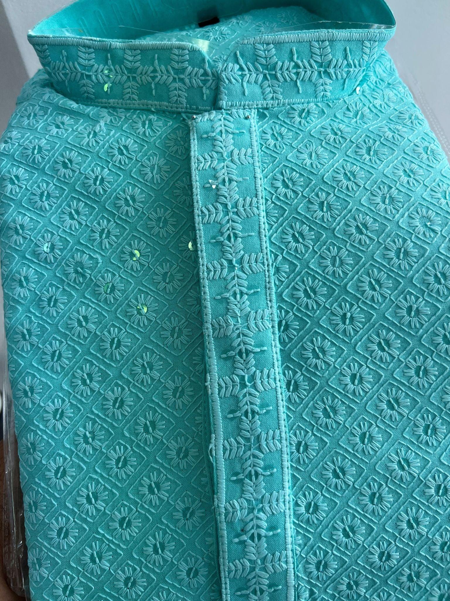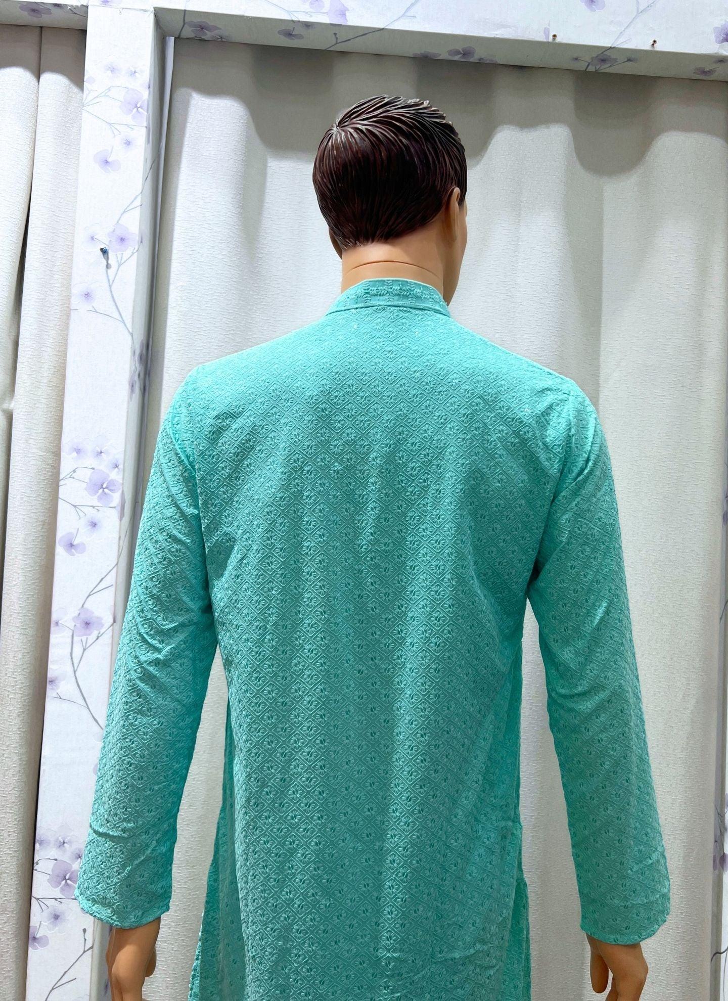 Chikankari Mens Kurta Set In Skyblue