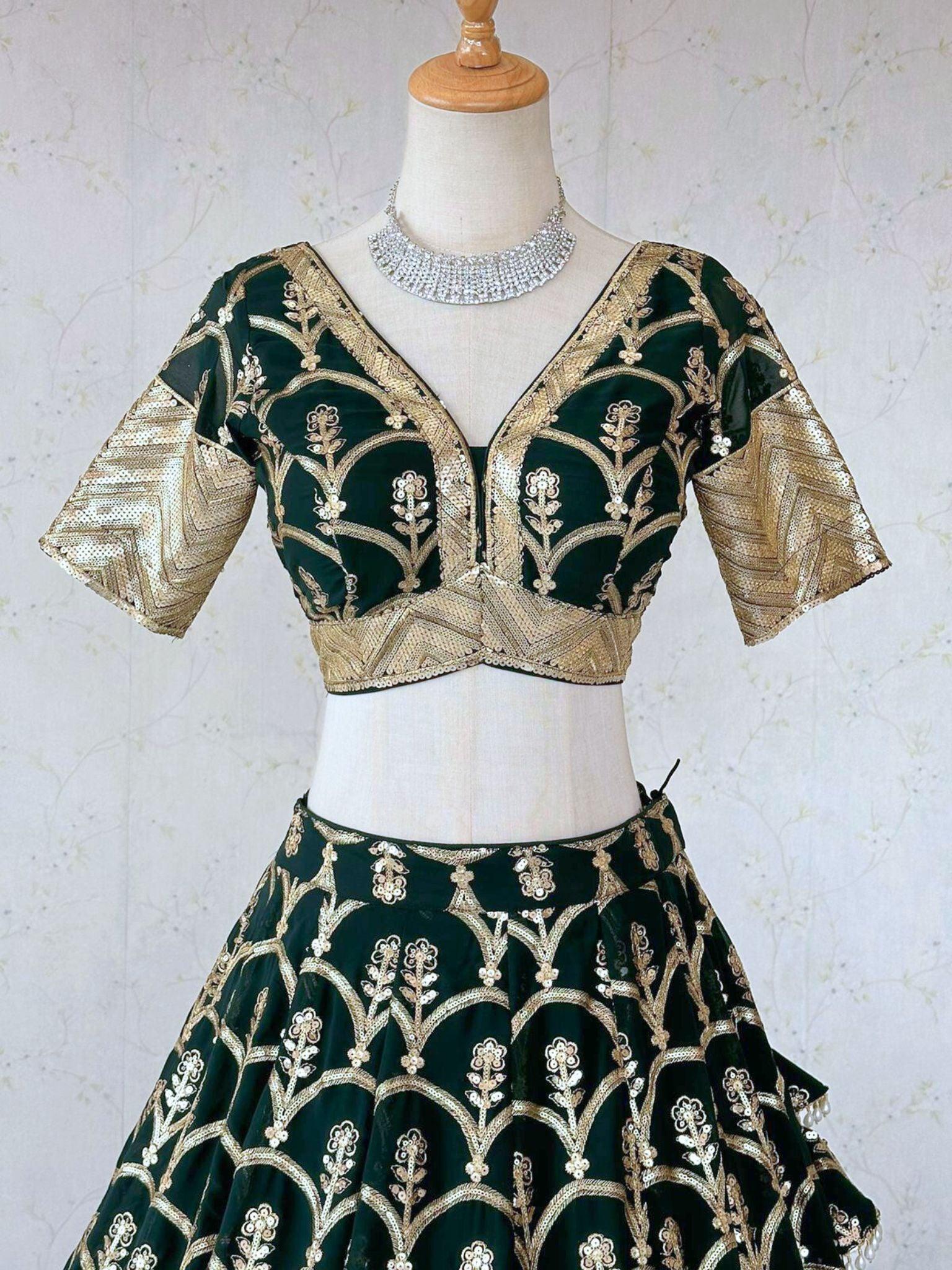Darkgreen Blouse Mirror Work
