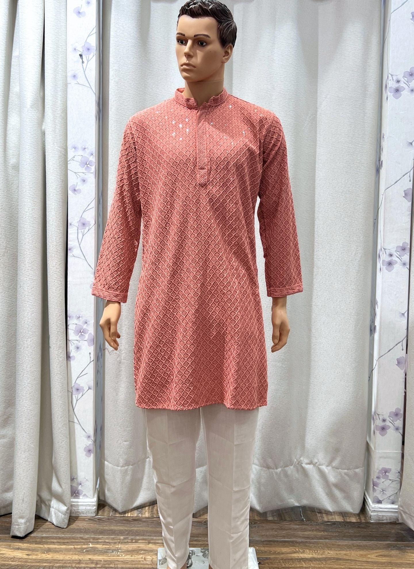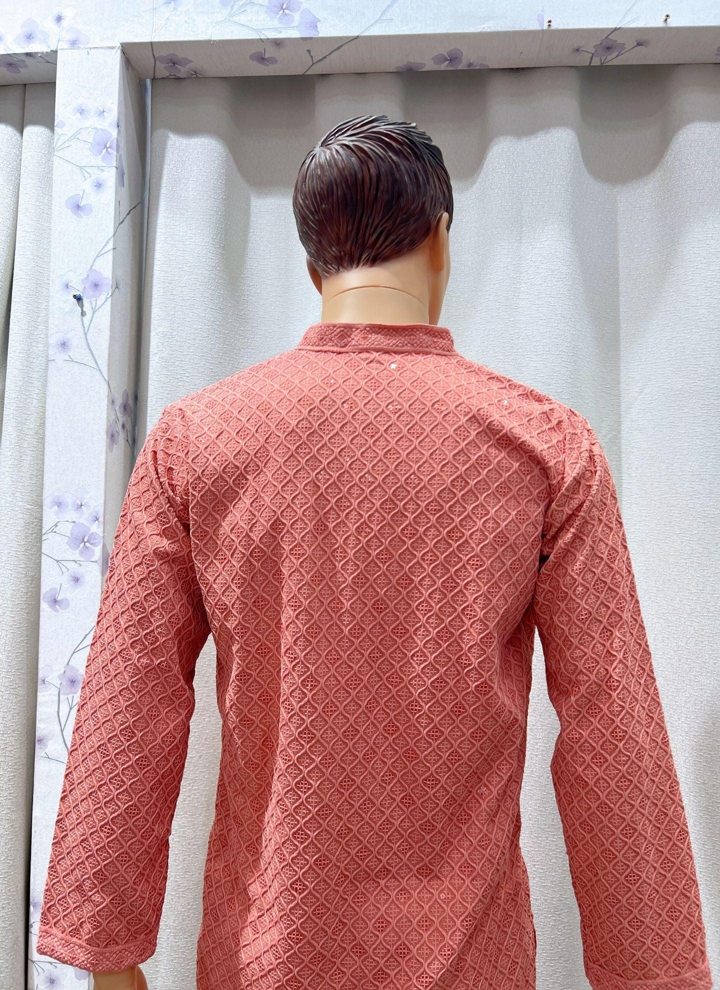 Onion Pink Mens Chikankari Kurta Set