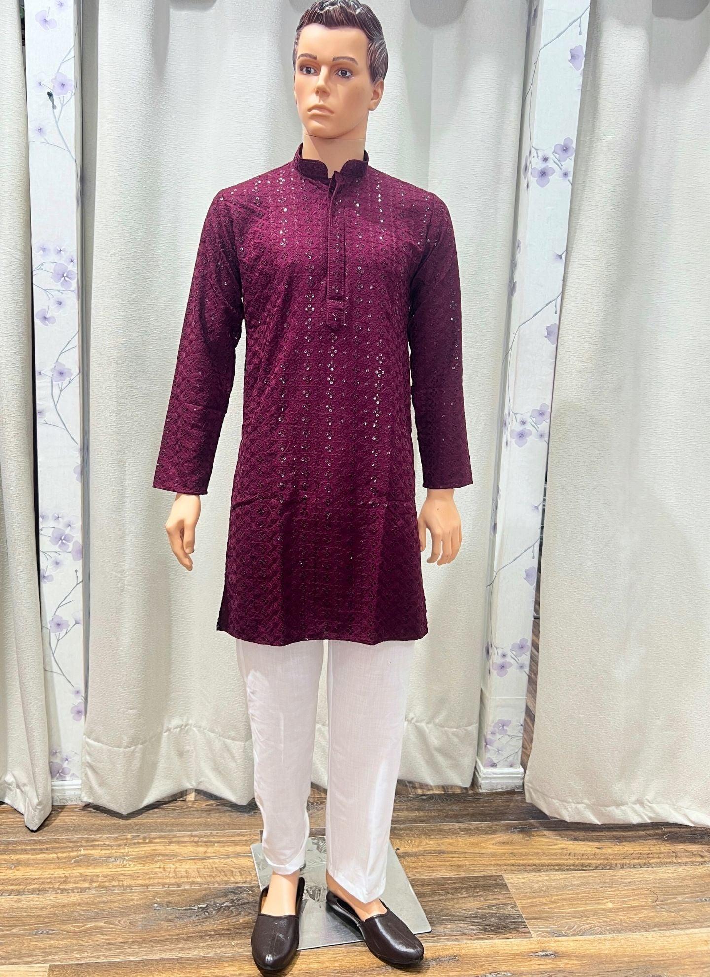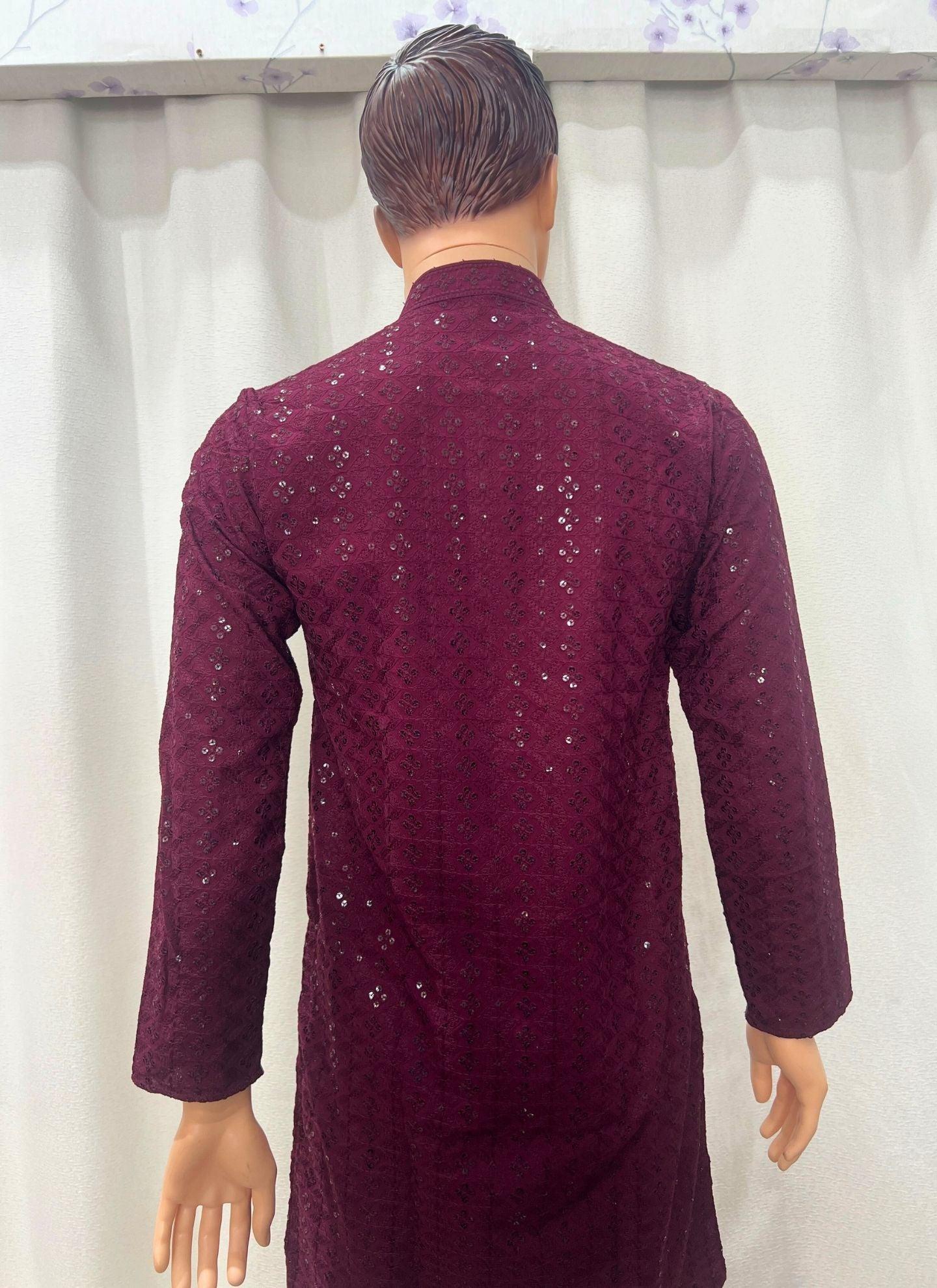 Chikankari Mens Kurta Set In Purple