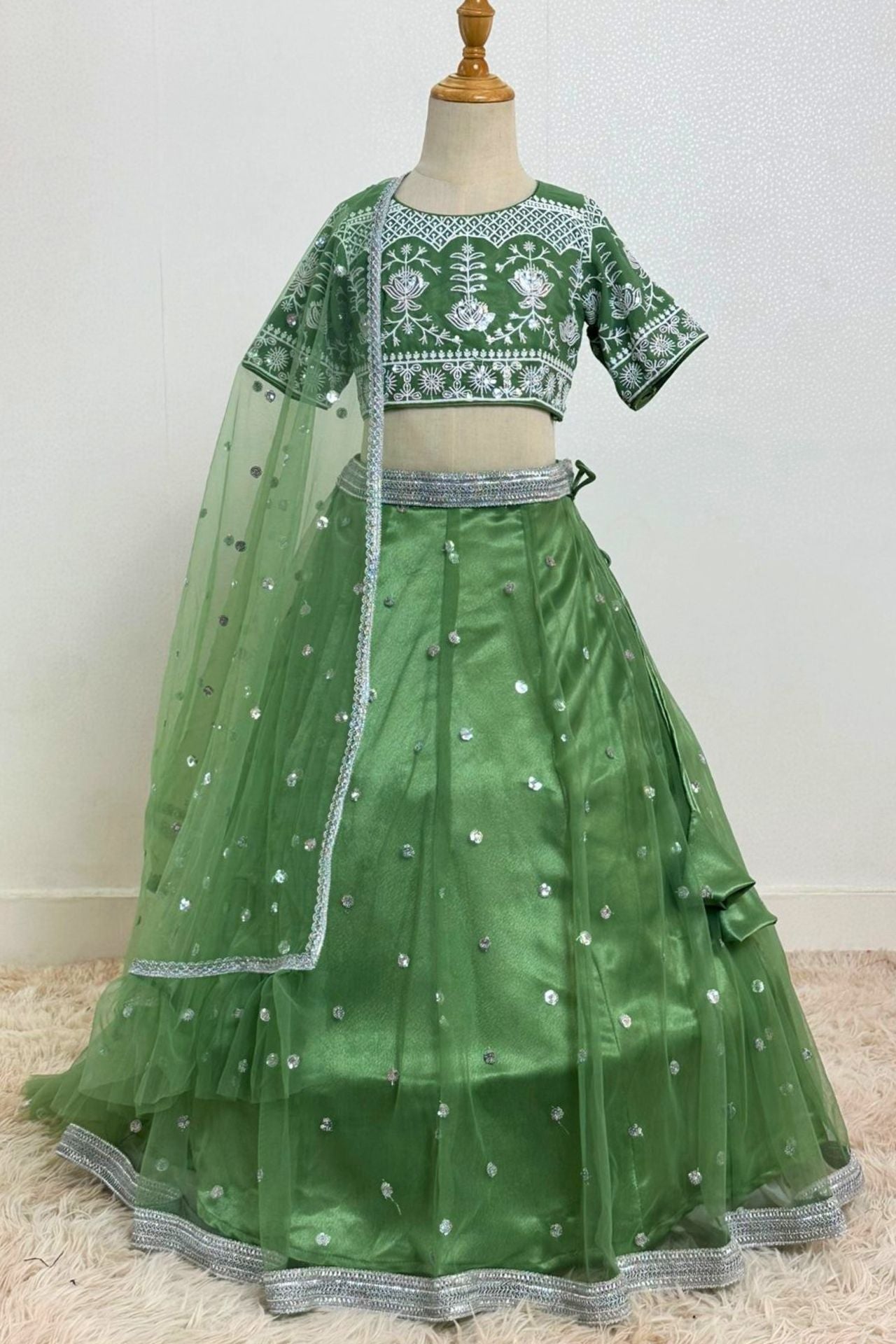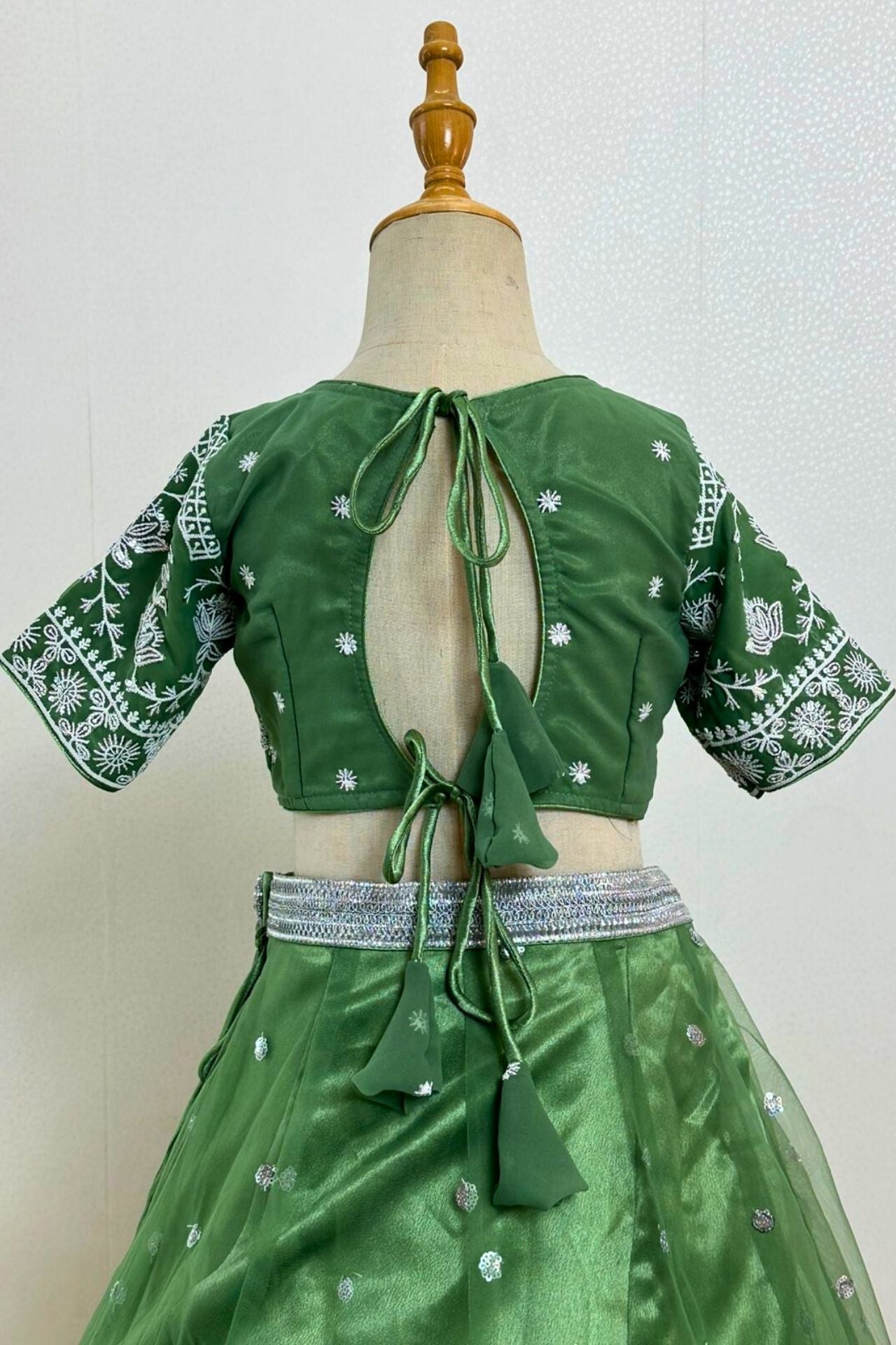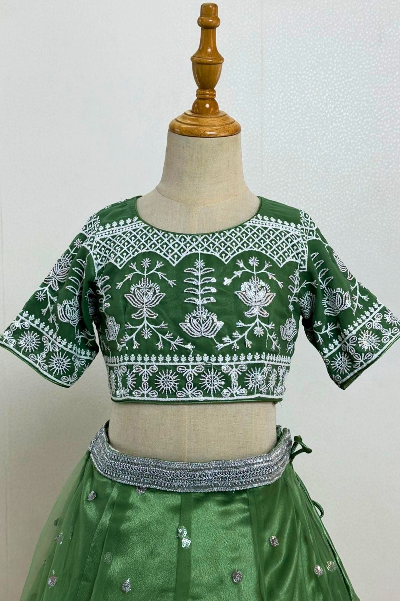 Vivid Turquoise Lehenga Set With White Thread Embroidery