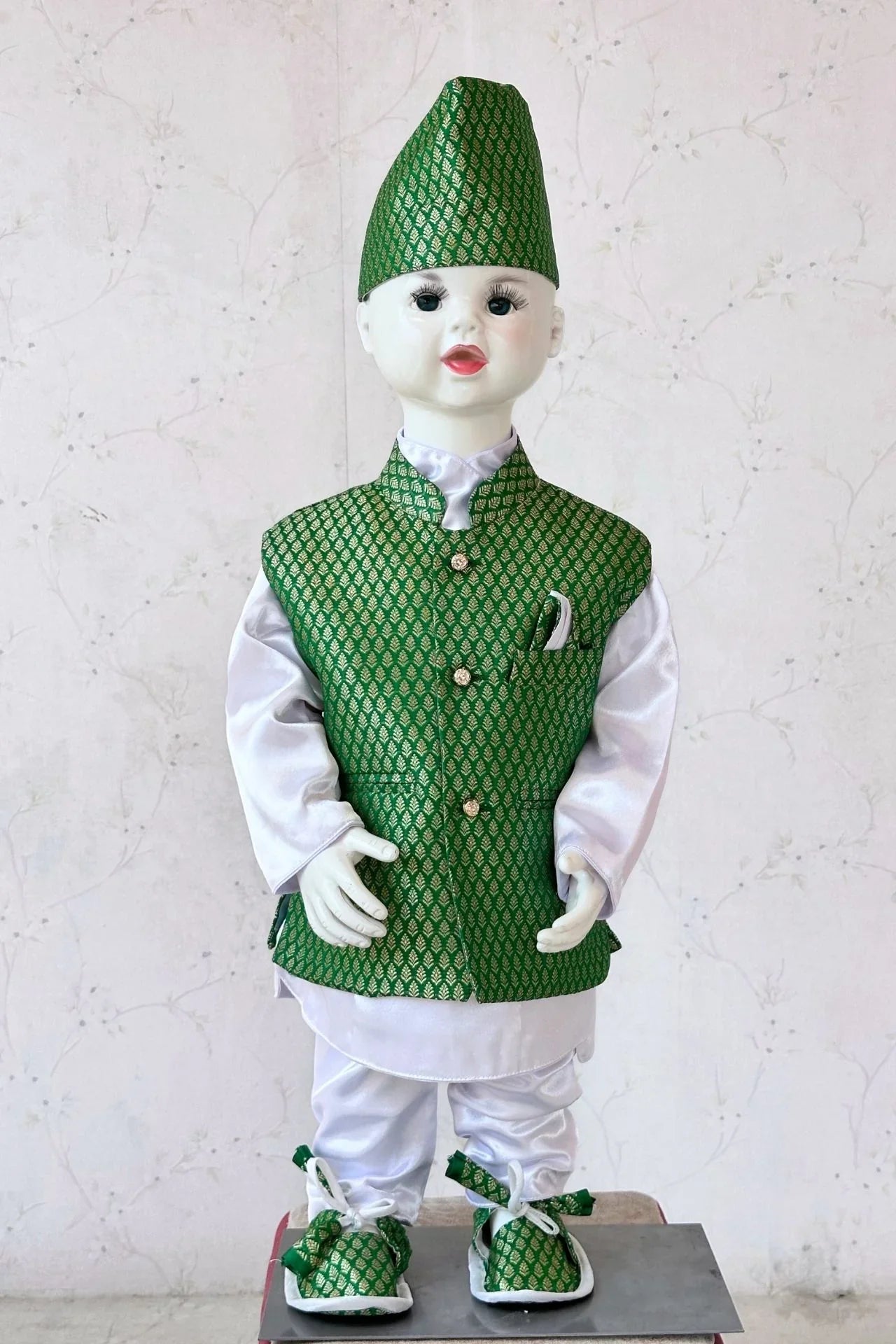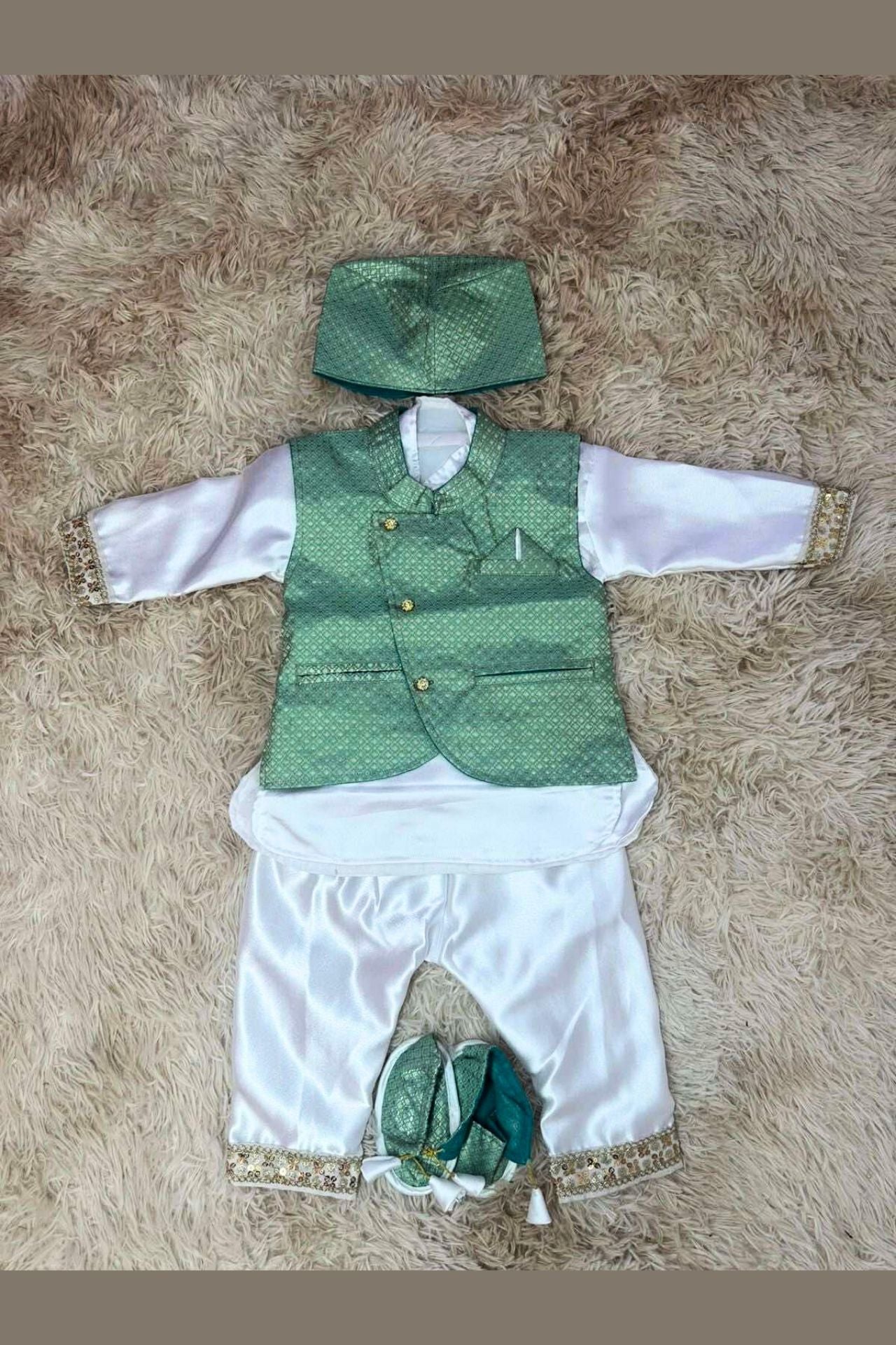 Green Waistcoat Daura Suruwal Pasni Dress For Boy
