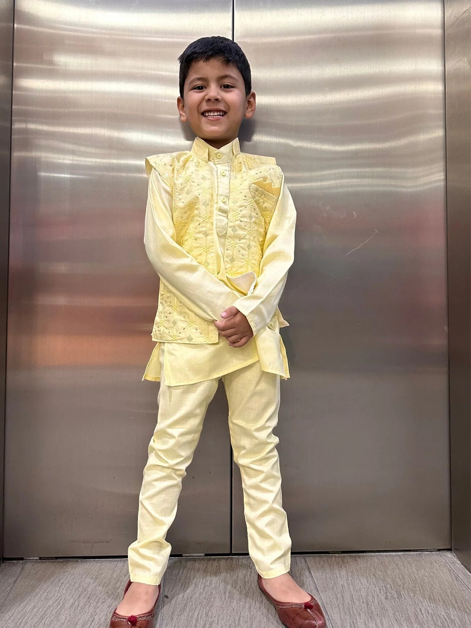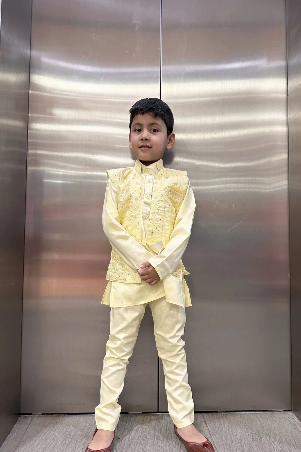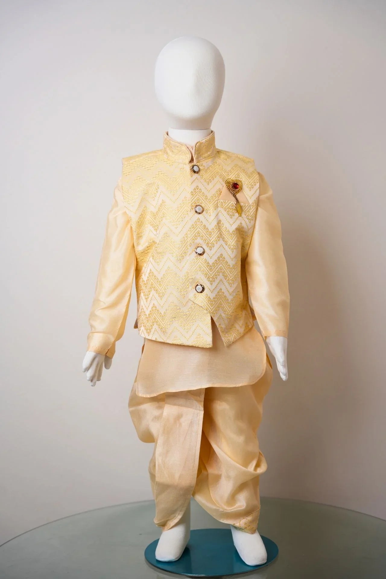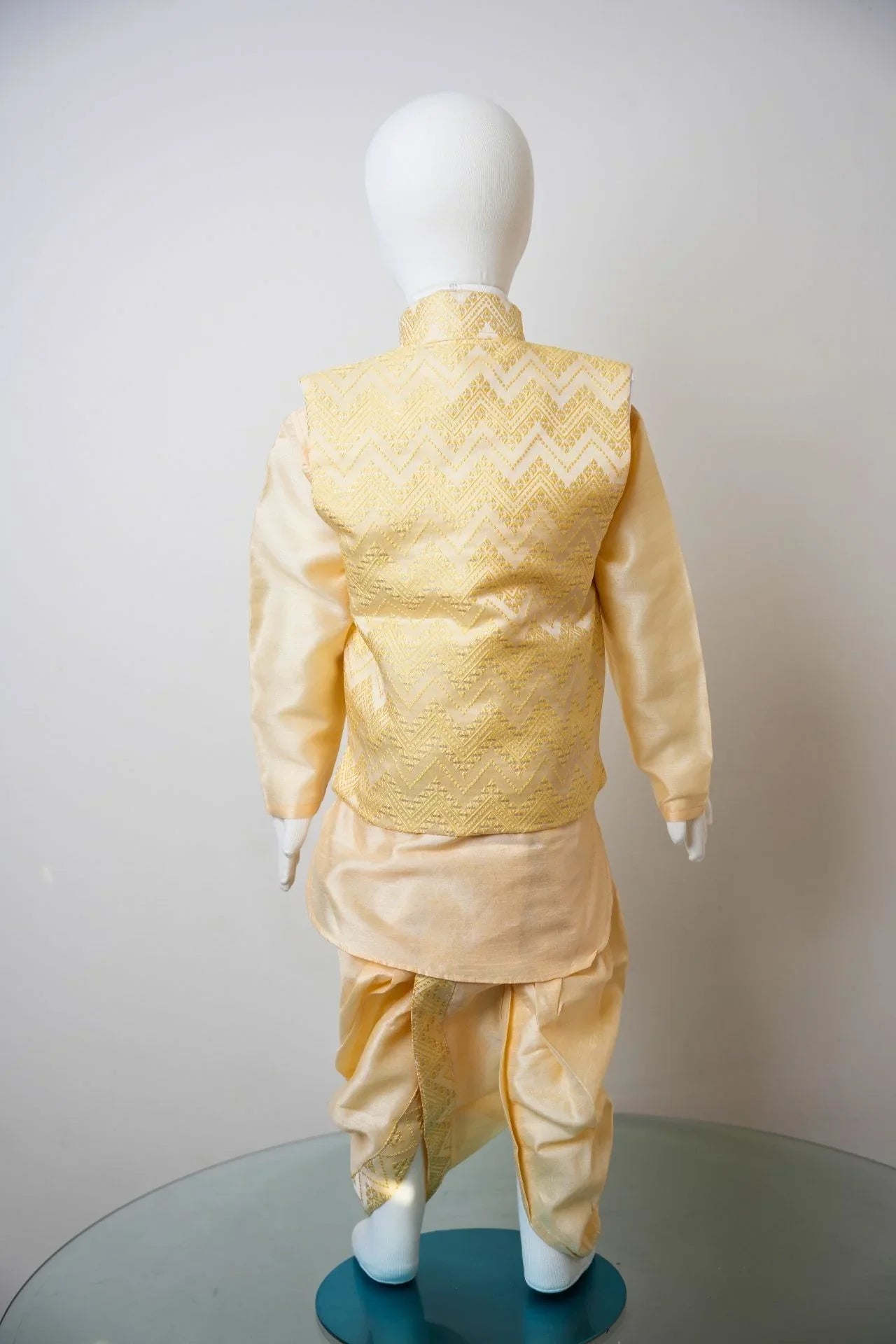 Boys Dhoti Kurta With Golden and Yellow Jacket