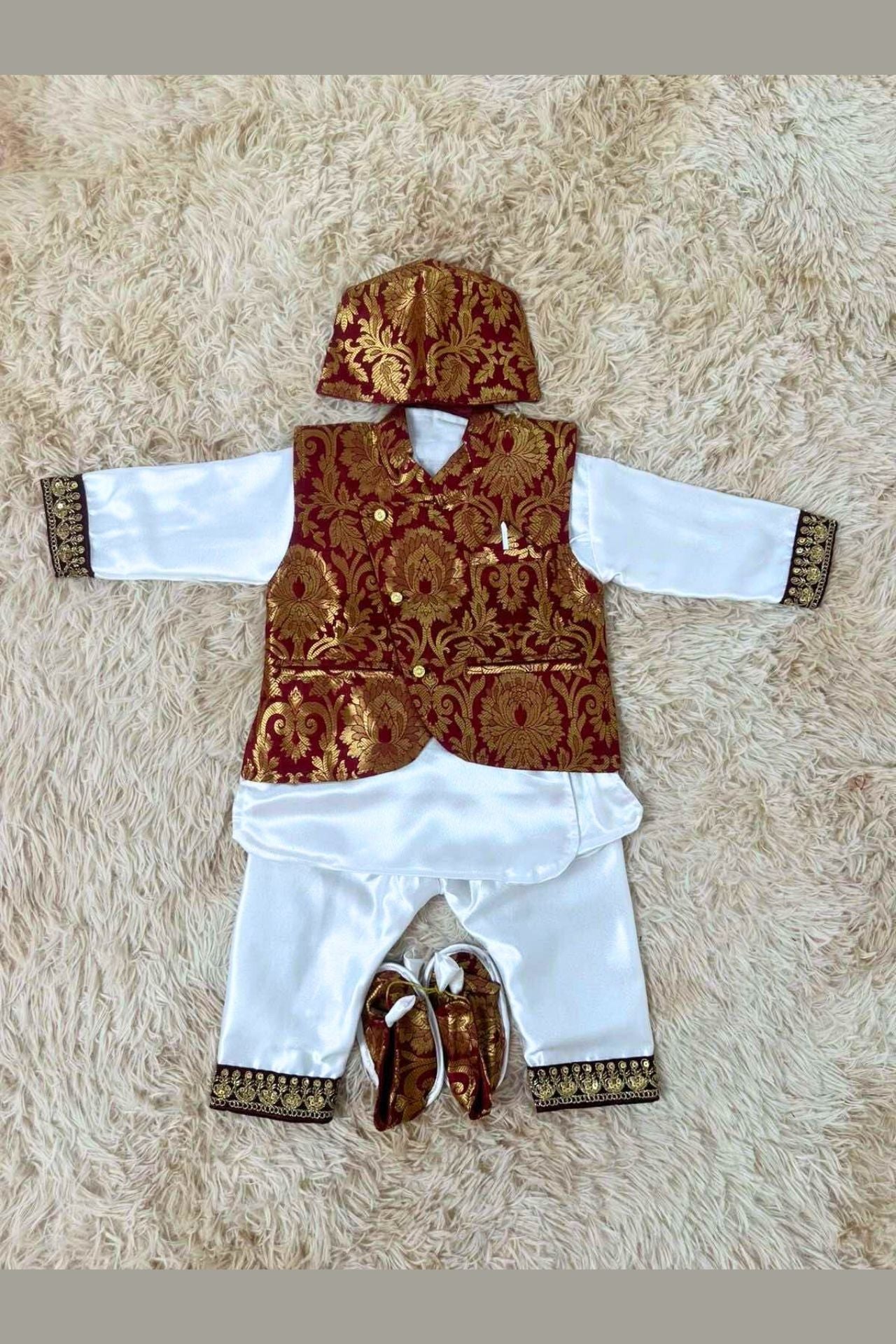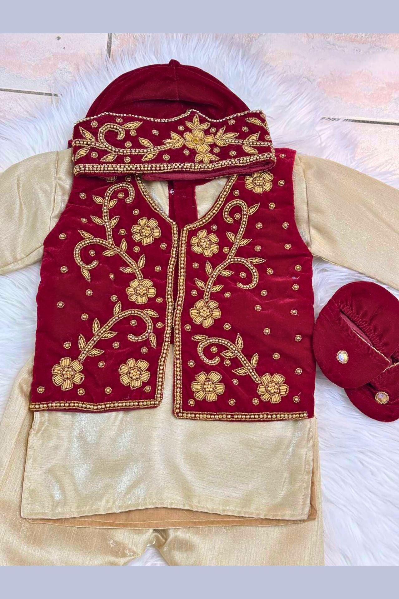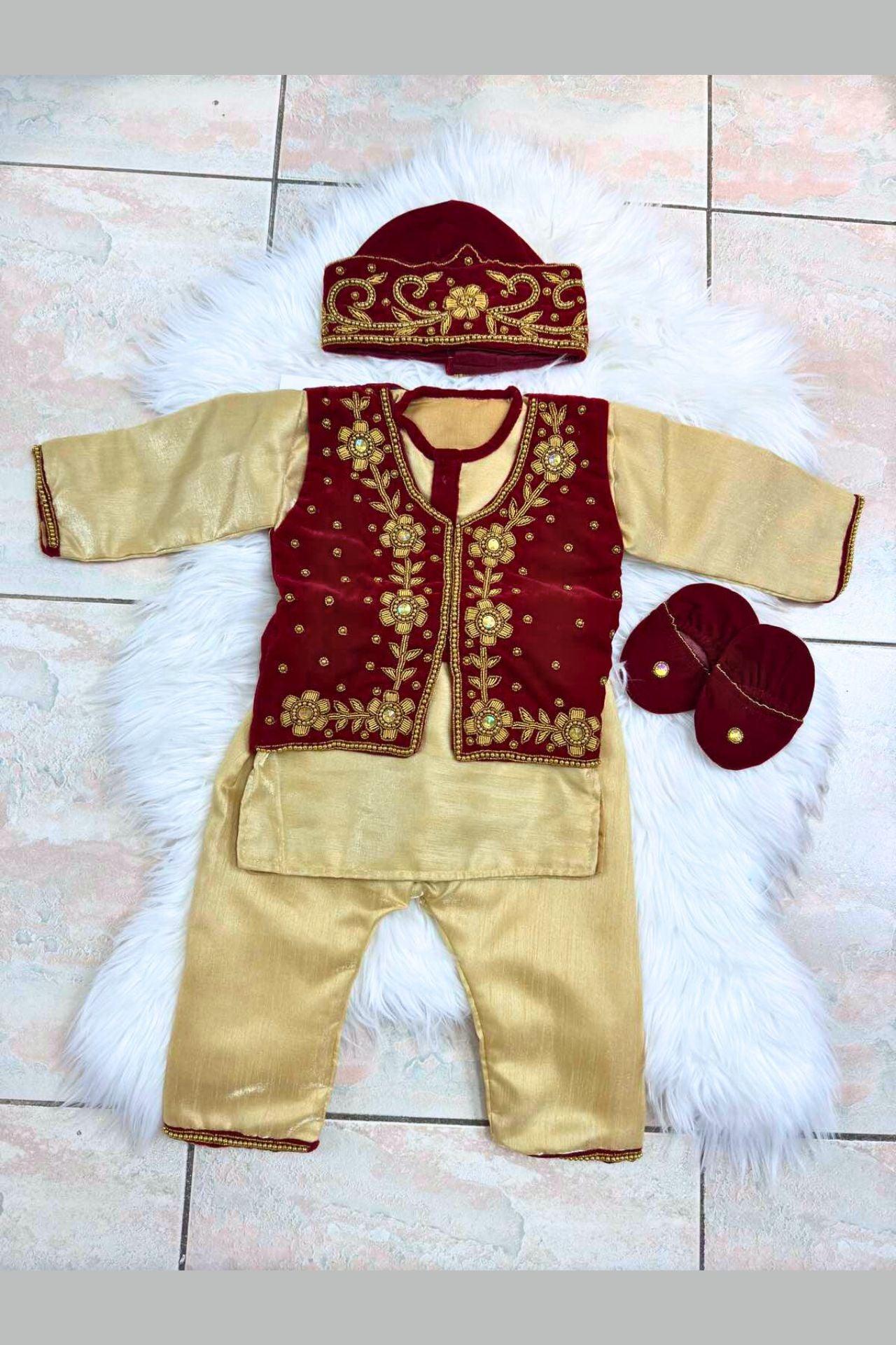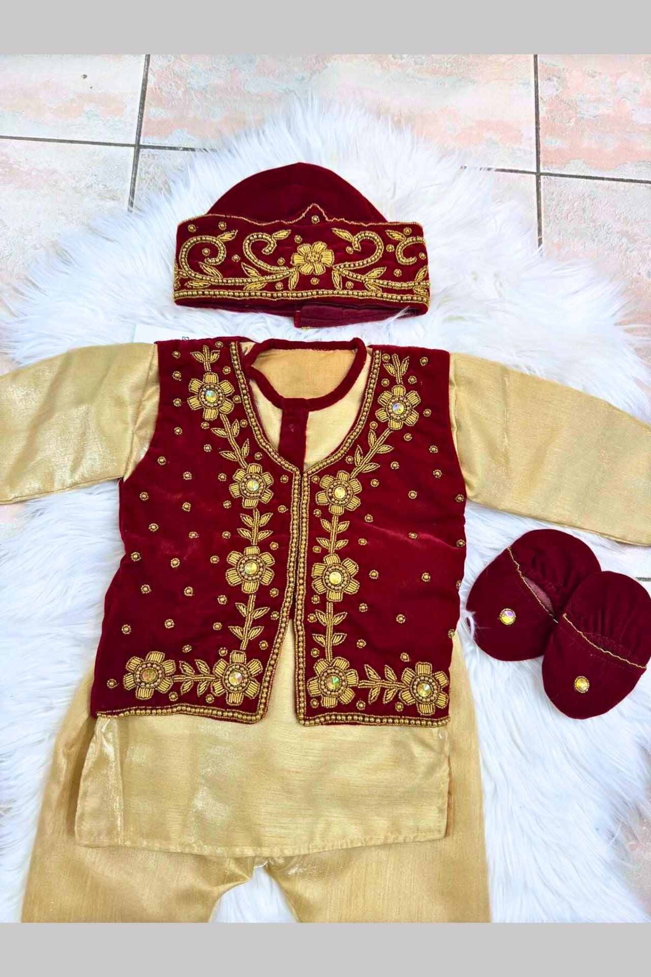 Boys Dhoti Kurta With Golden and Yellow Jacket