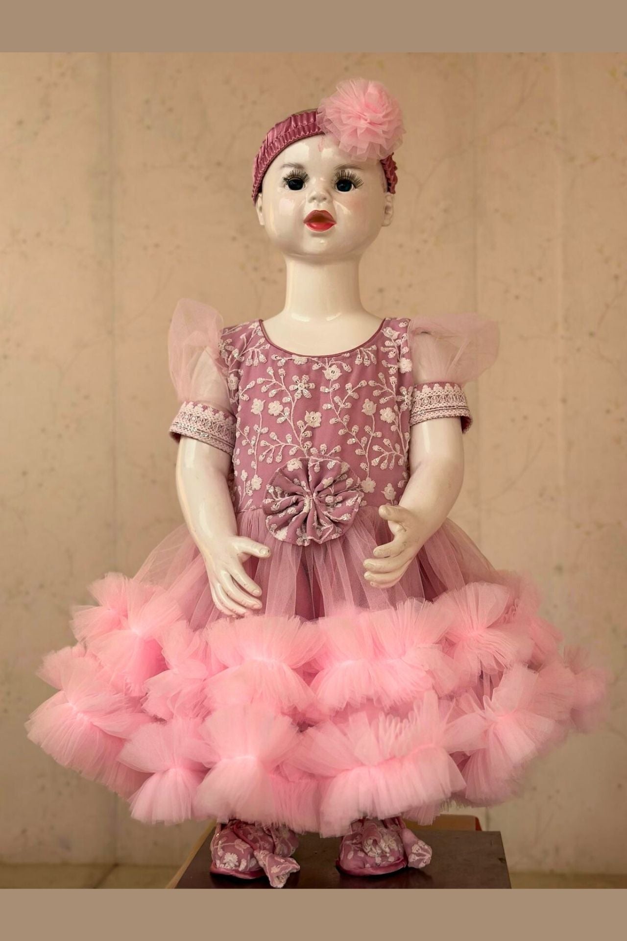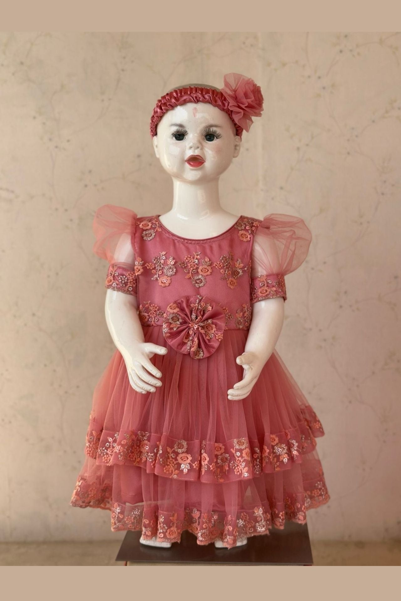 Rosegold Pink Baby Girl Pasni Or First Birthday Dress