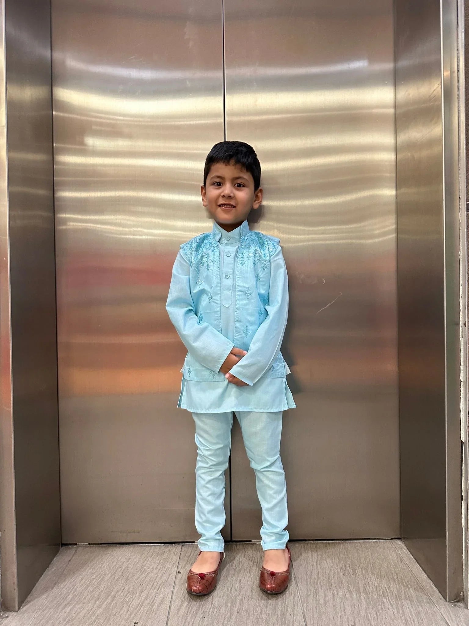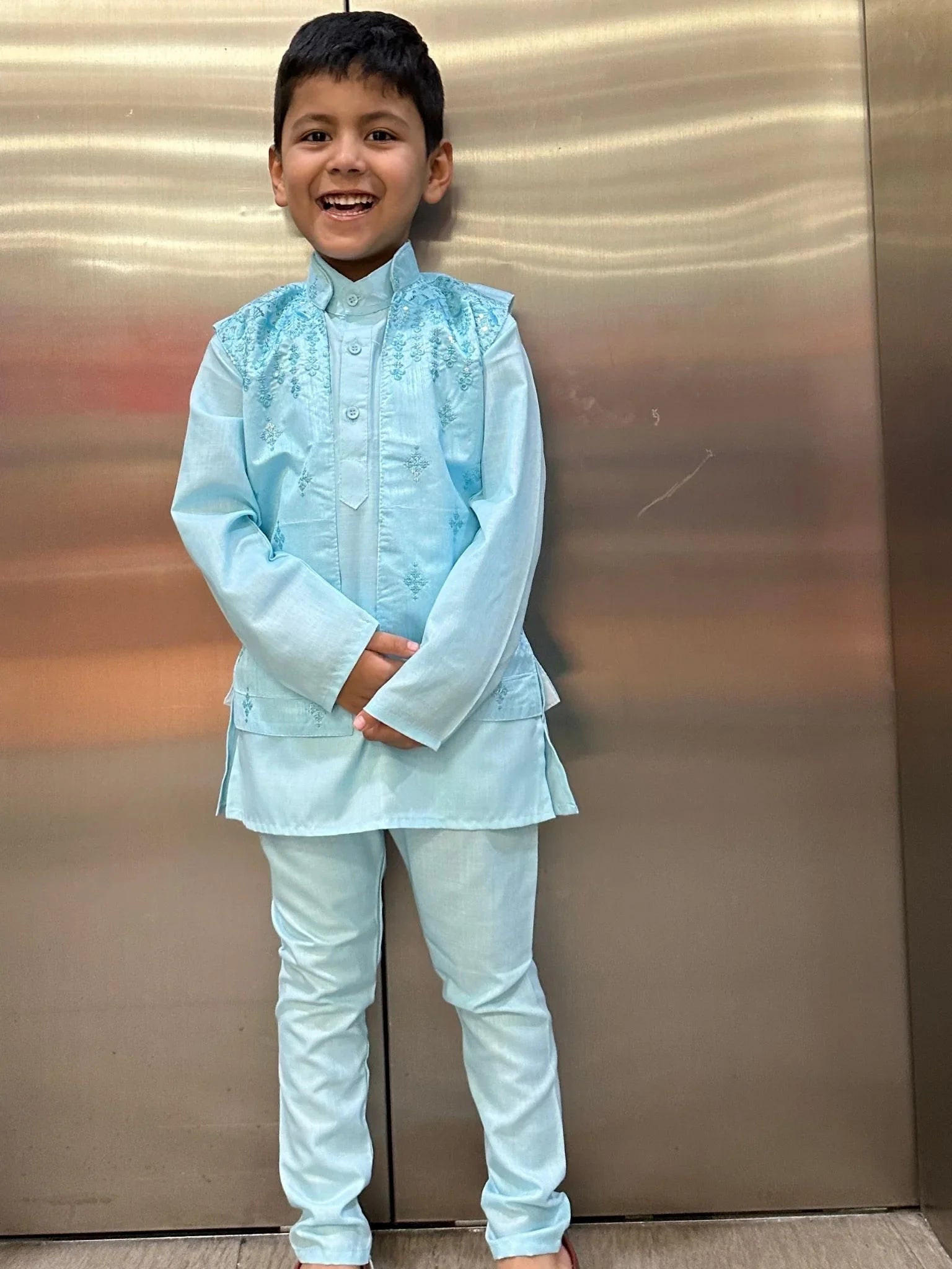 SkyBlue Waistcoat Daura Suruwal Pasni Dress For Boy