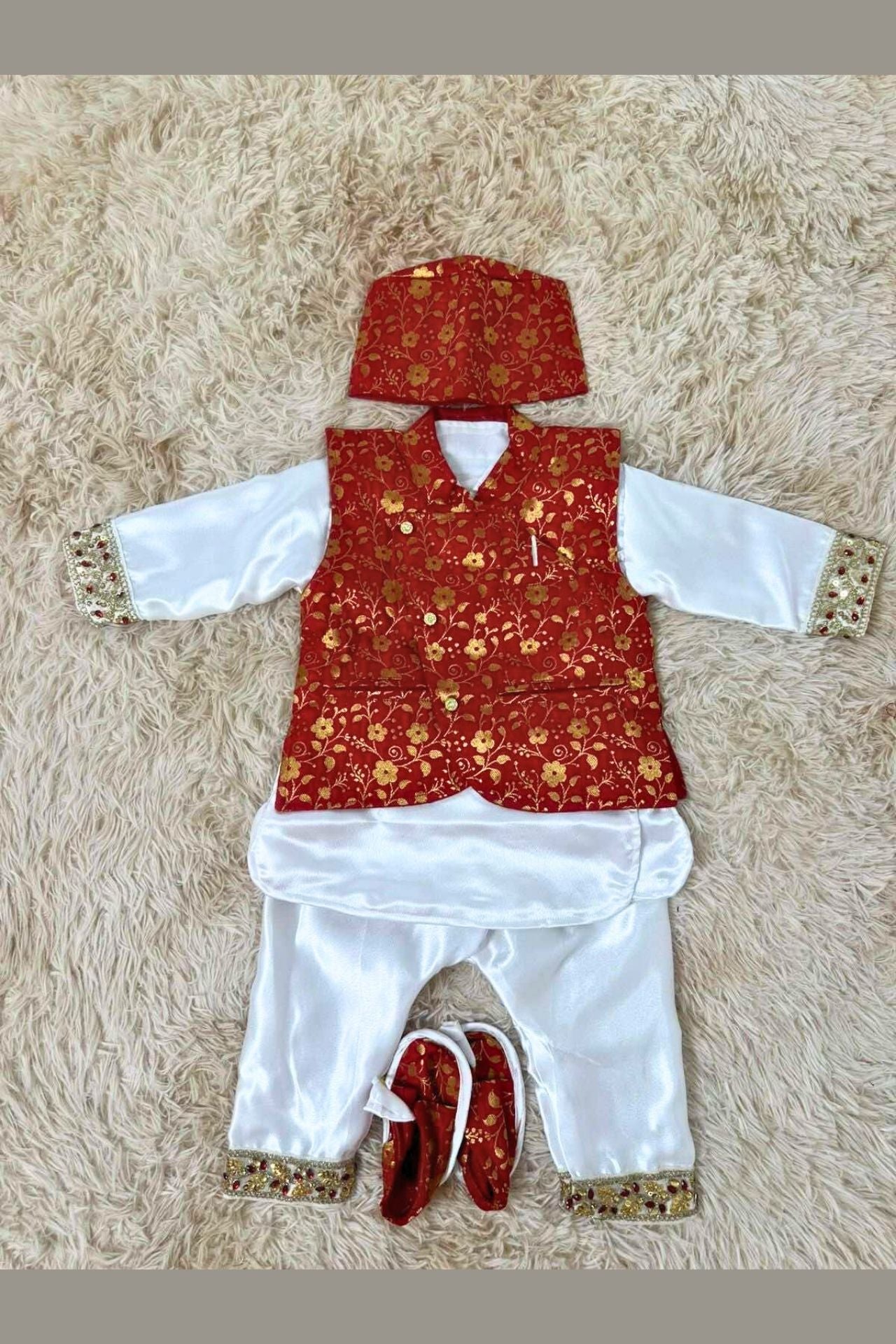 Kurta Pajama With Printed Jacket Dhoti Pant