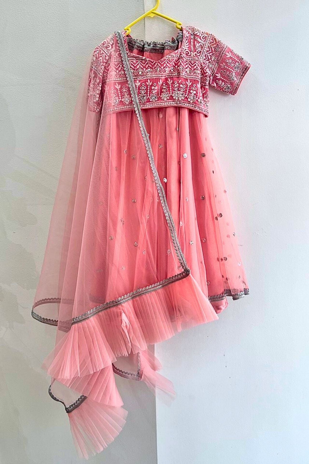 Set includes: 1 Embroidered Choli (Blouse), 1 Flared Lehenga (Skirt), and 1 Ruffled Dupatta.