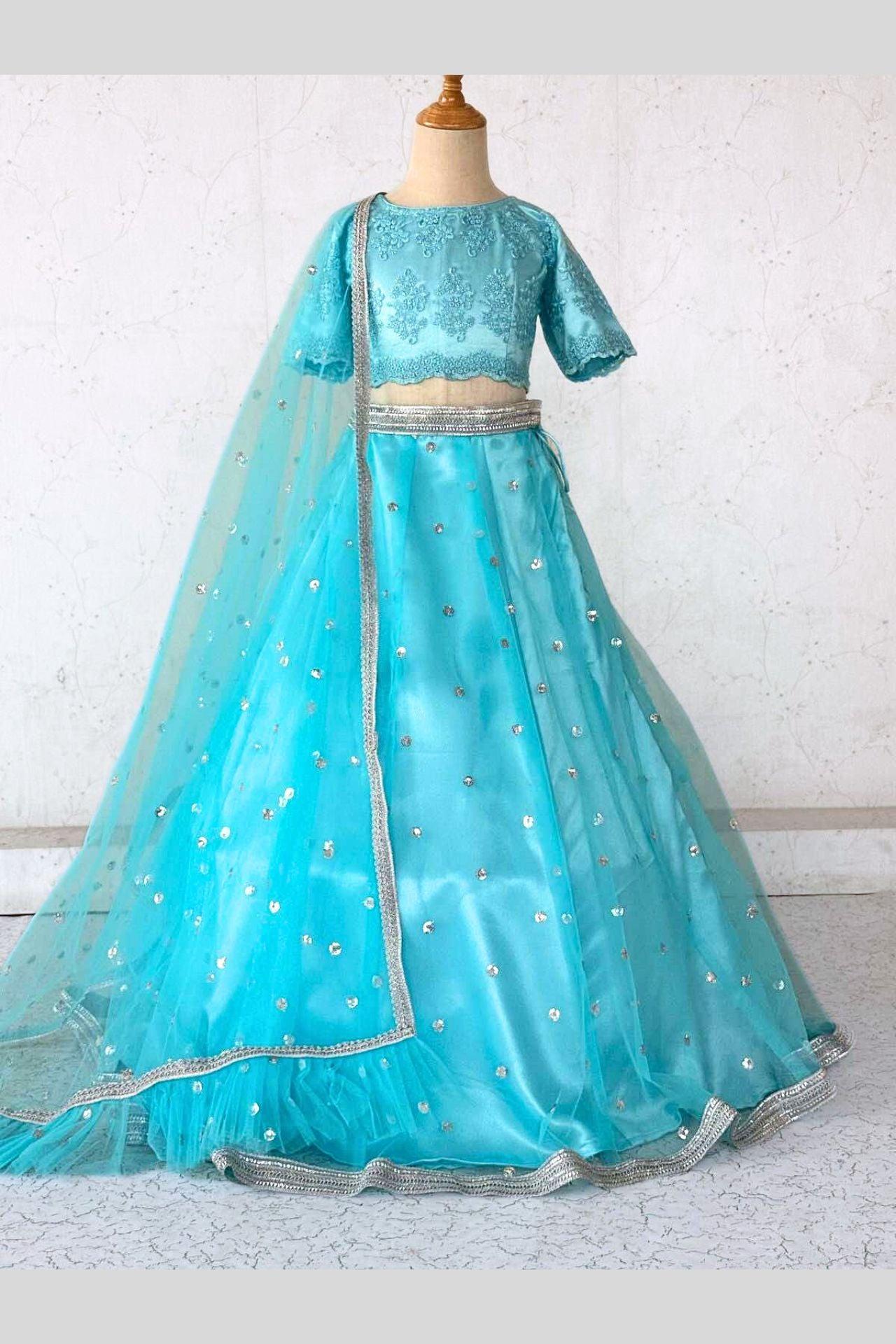 Thread Work Girl Lehenga Set In SkyBlue