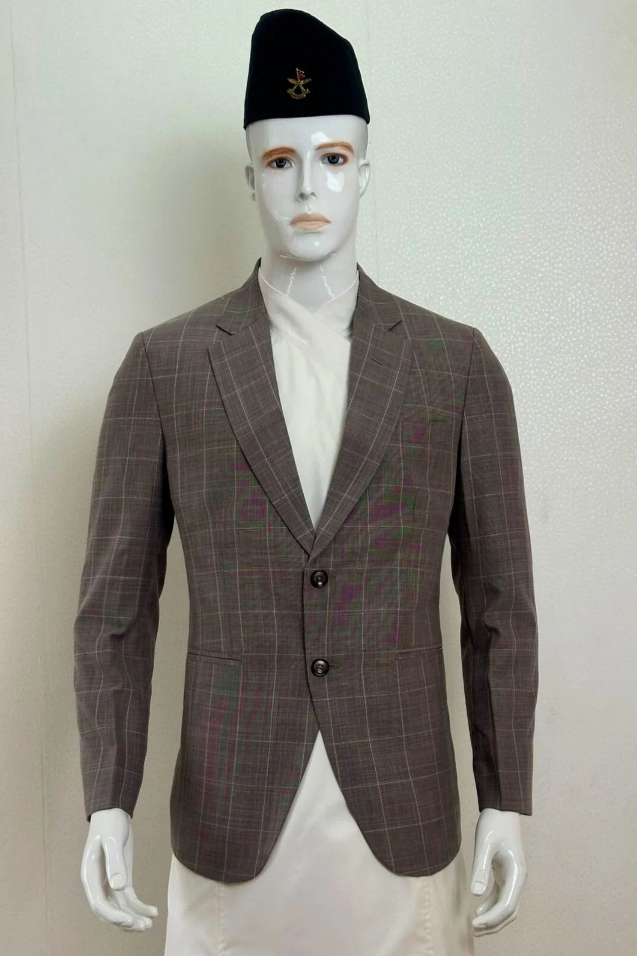 Shadow Gray Windowpane Check Men's Premium Blazer