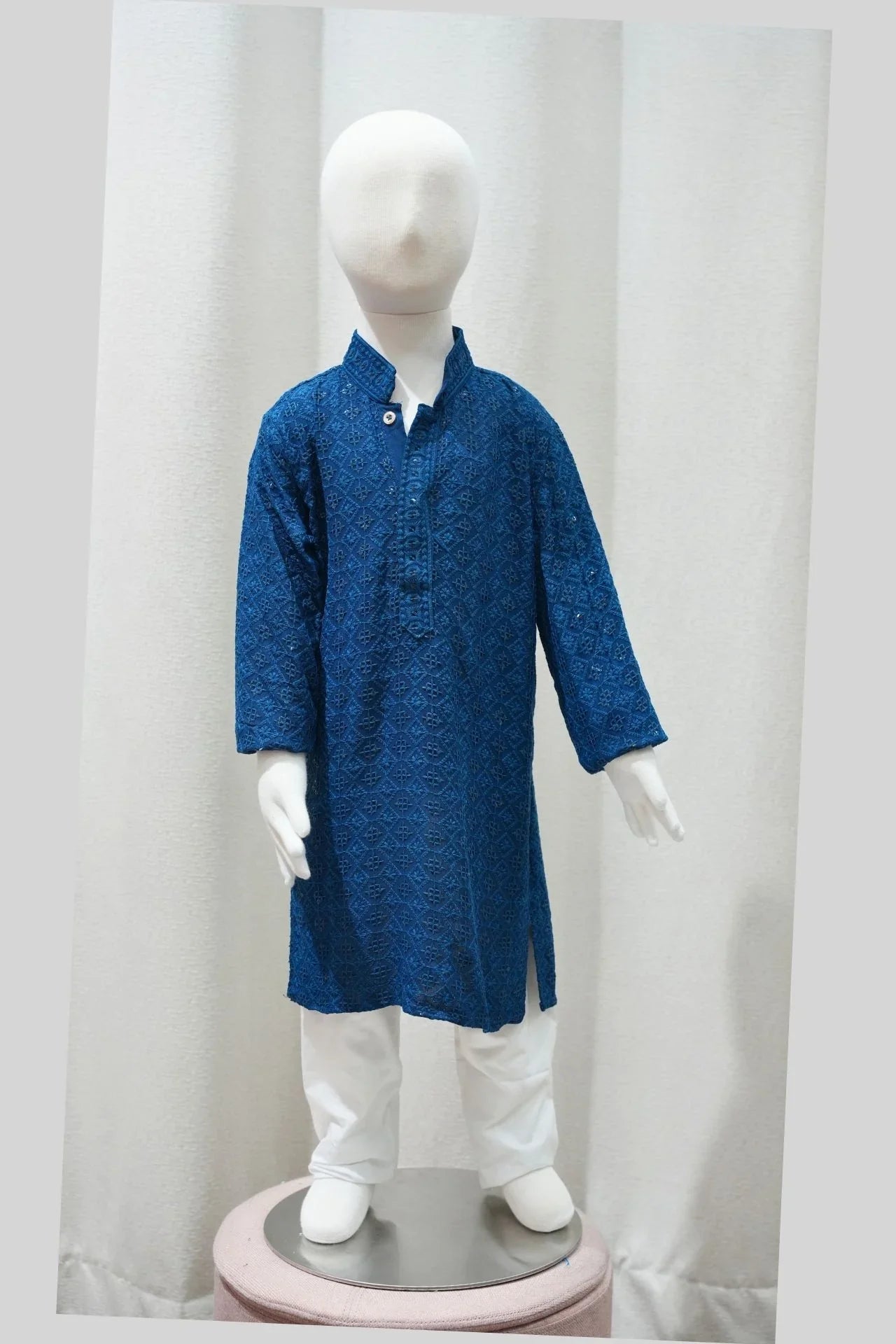 - This Boys Chikankari Kurta Pajama is made of comfortable cotton material with full sleeves and a regular fit.