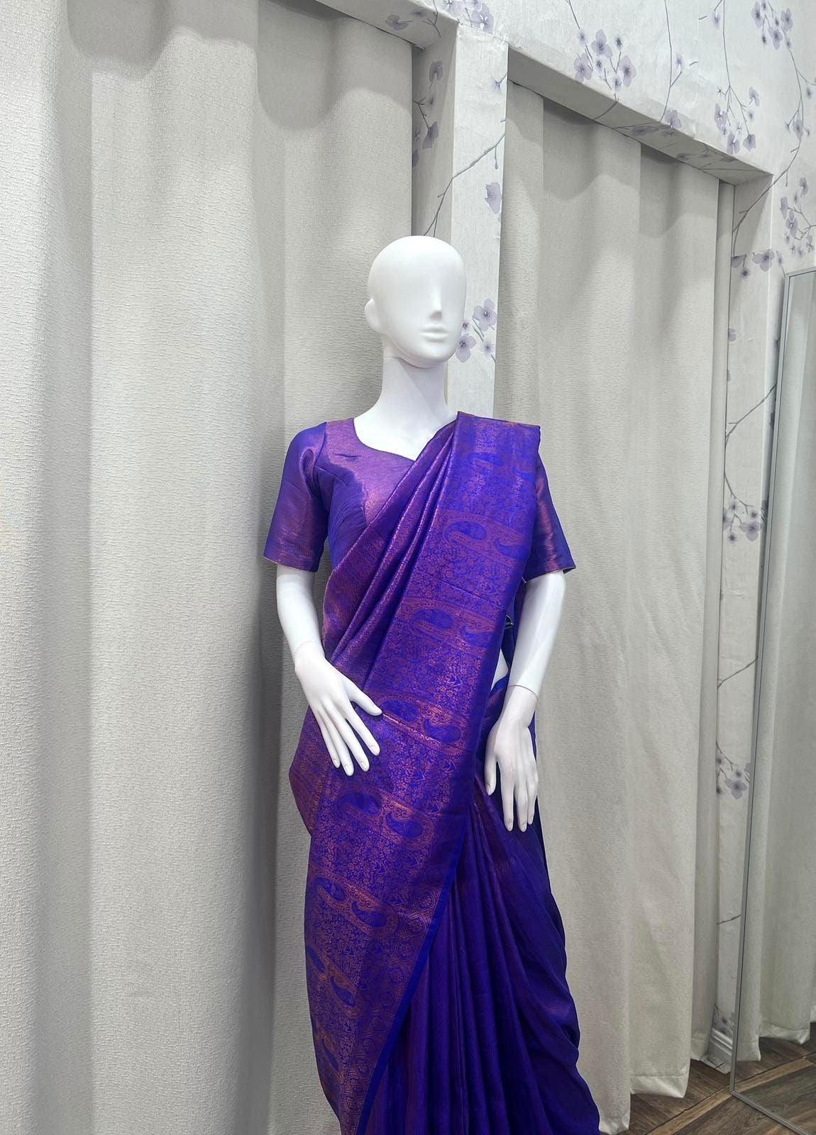 Kanjivaram Saree With Stitiched Blouse in Purple
