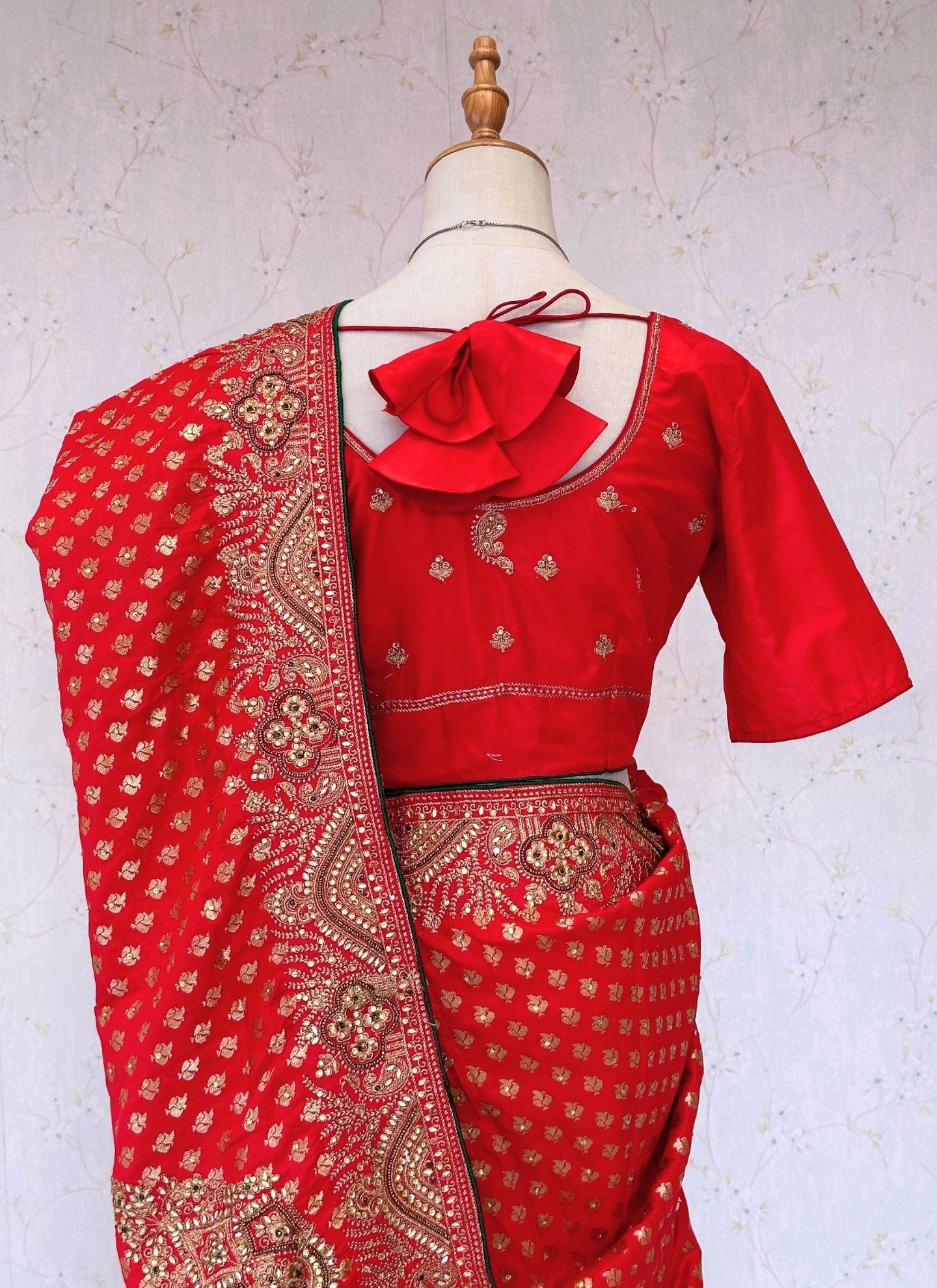 Red bridal Banarasi saree set
