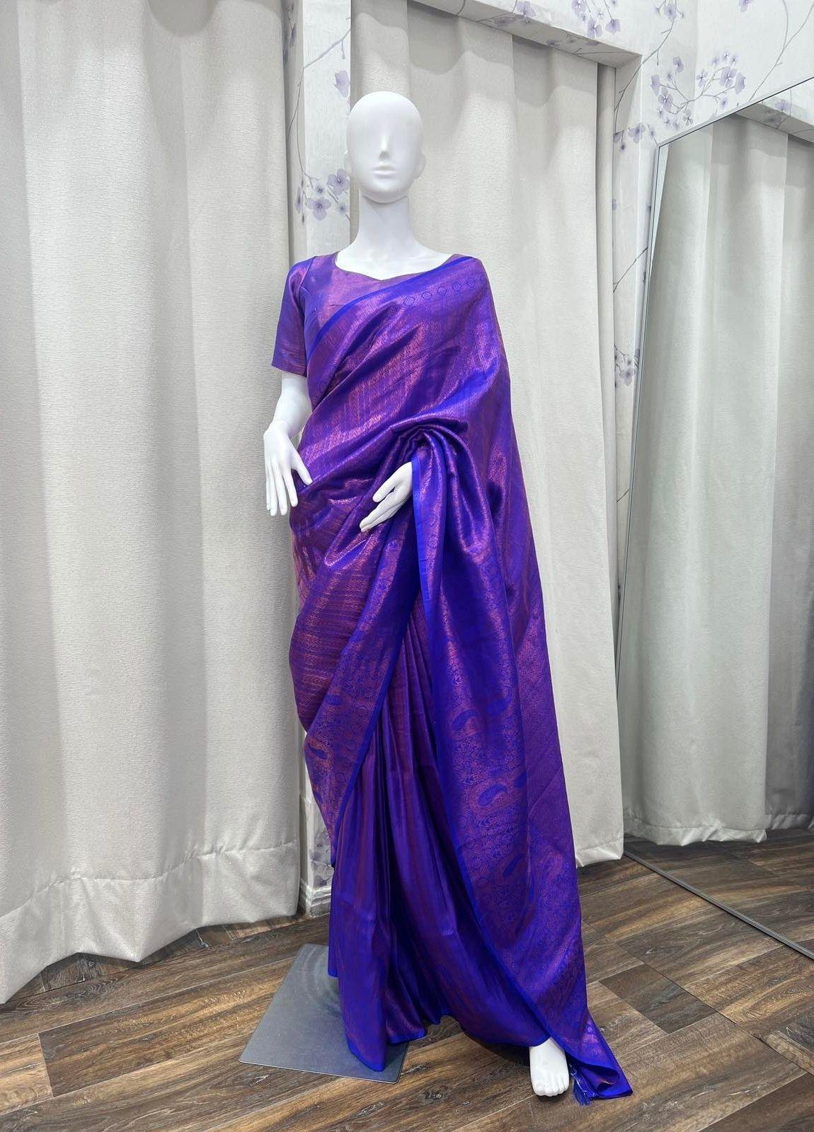 Kanjivaram Saree With Stitiched Blouse in Purple