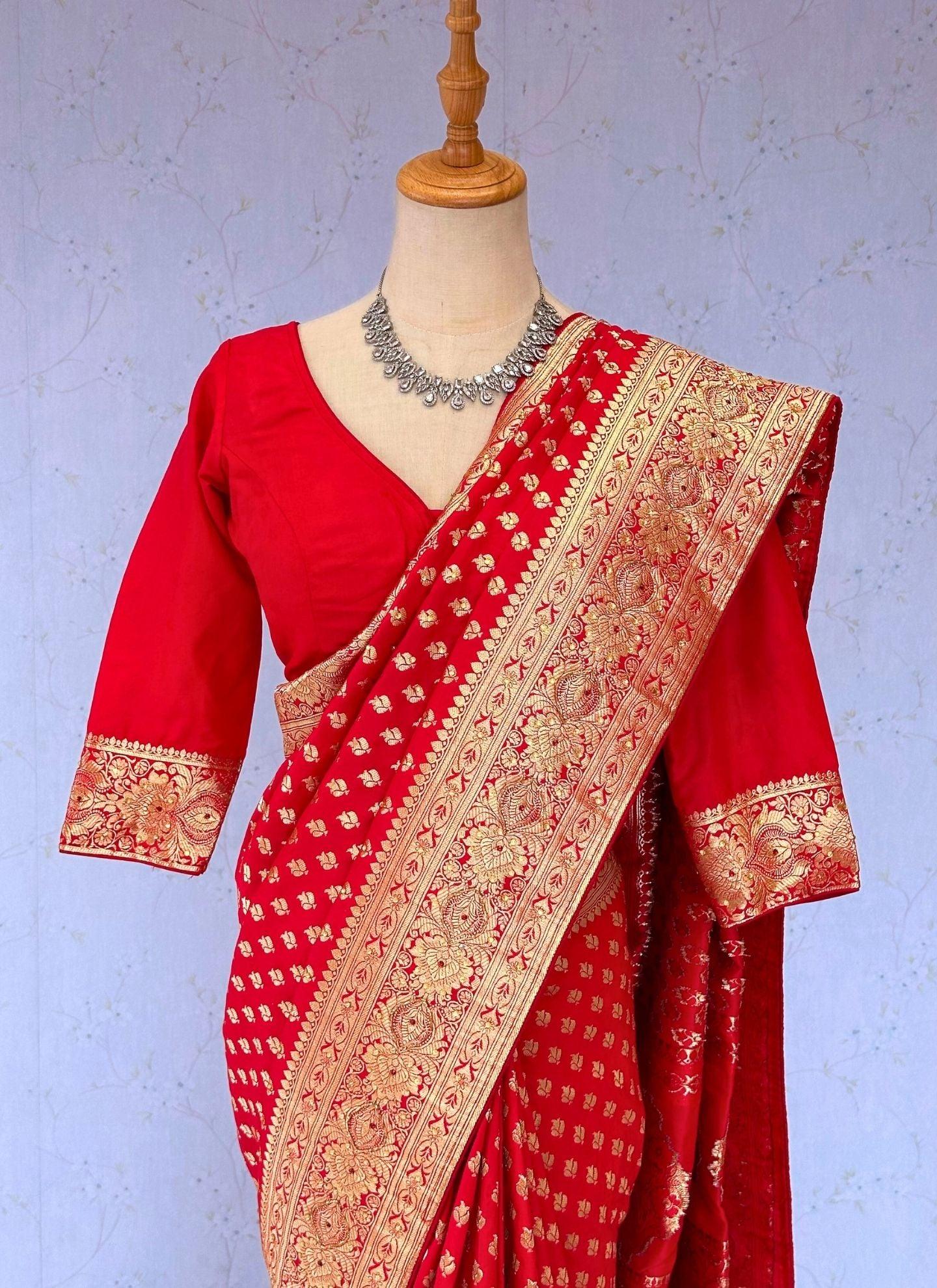 Khaddi Banarasi Georgette HandWork Saree With Stitched Blouse