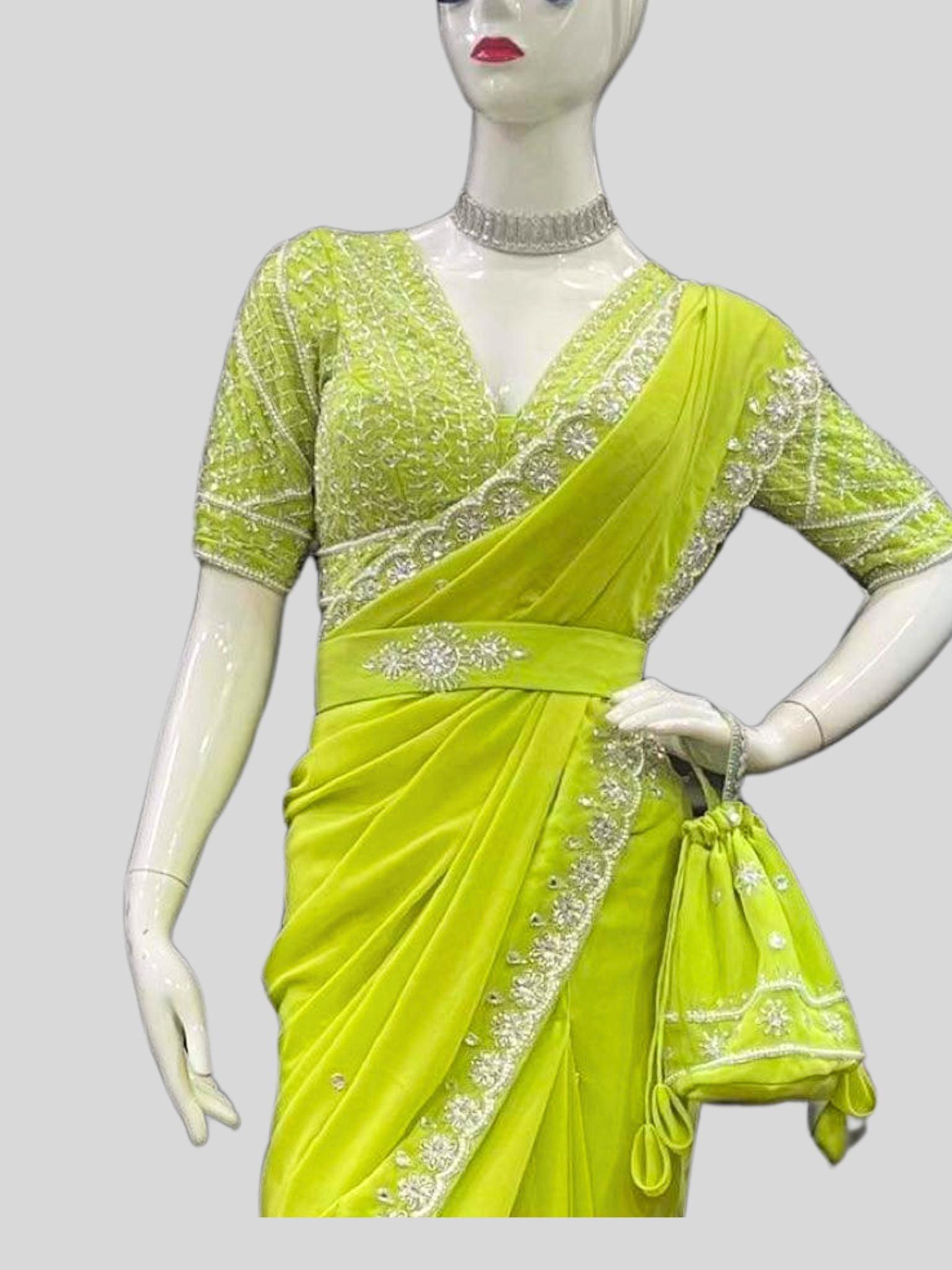 - 1- ready to wear handwork Georgette Saree (falls, pico and saree plate done)